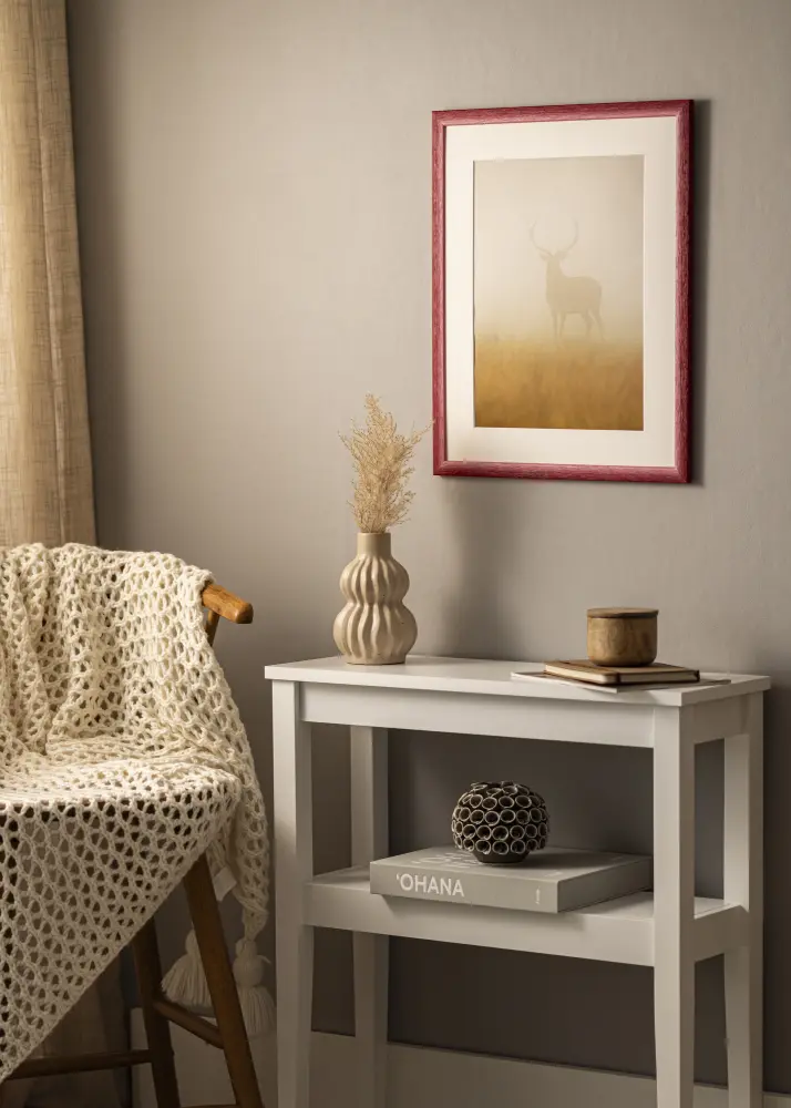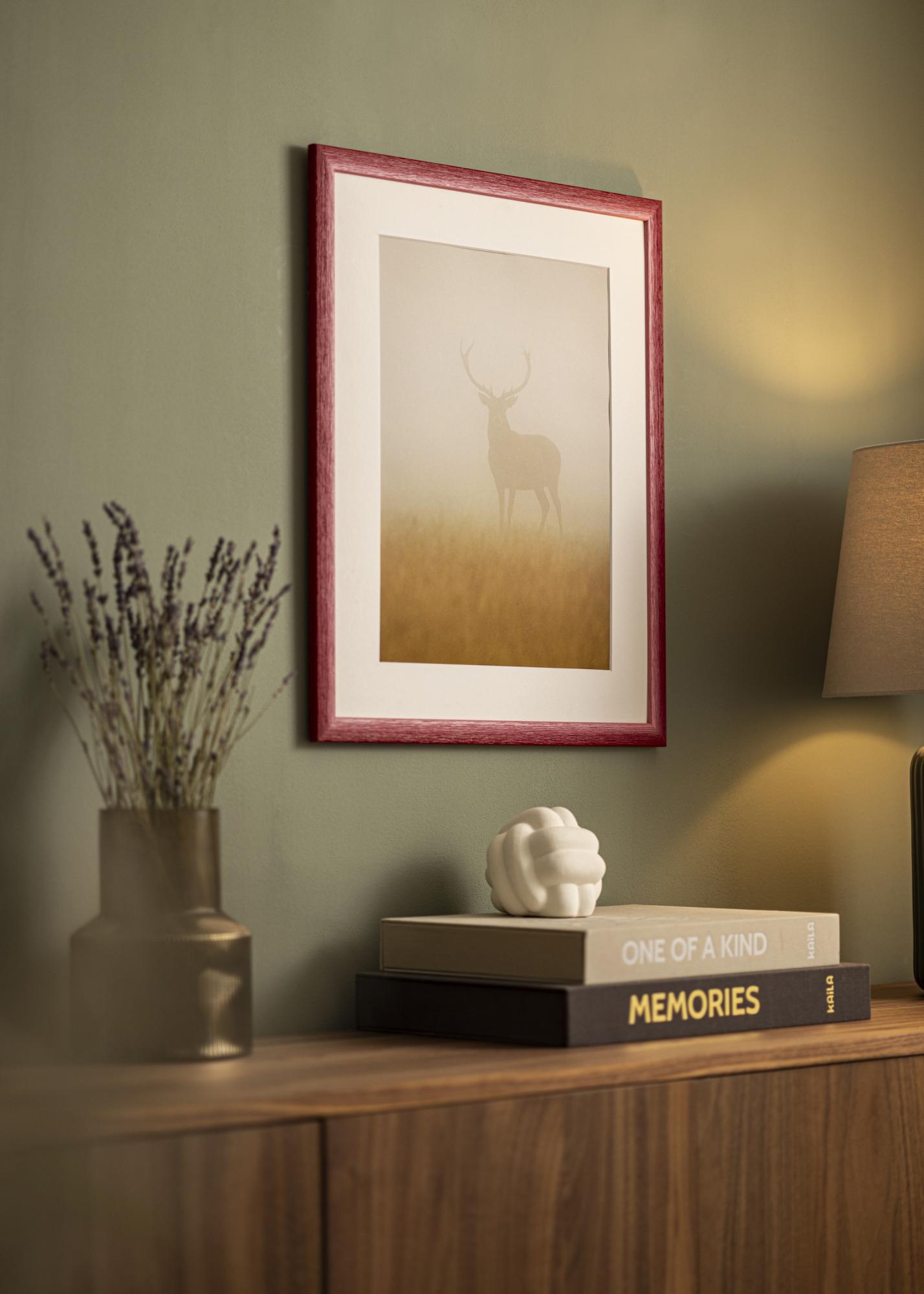 Koska jokainen kehys valmistetaan omassa kehyspajassamme, voit olla varma, että saat korkealaatuisen tuotteen, joka on mukautettu juuri sinun mittojesi mukaan. Huomaa, että koska tuote on mittatilaustyö, tilauksen peruuttaminen ei ole mahdollista. Valitse Cornwall Tummanpunainen henkilökohtaiseen ja tyylikkääseen kehystykseen, joka todella tekee eron.