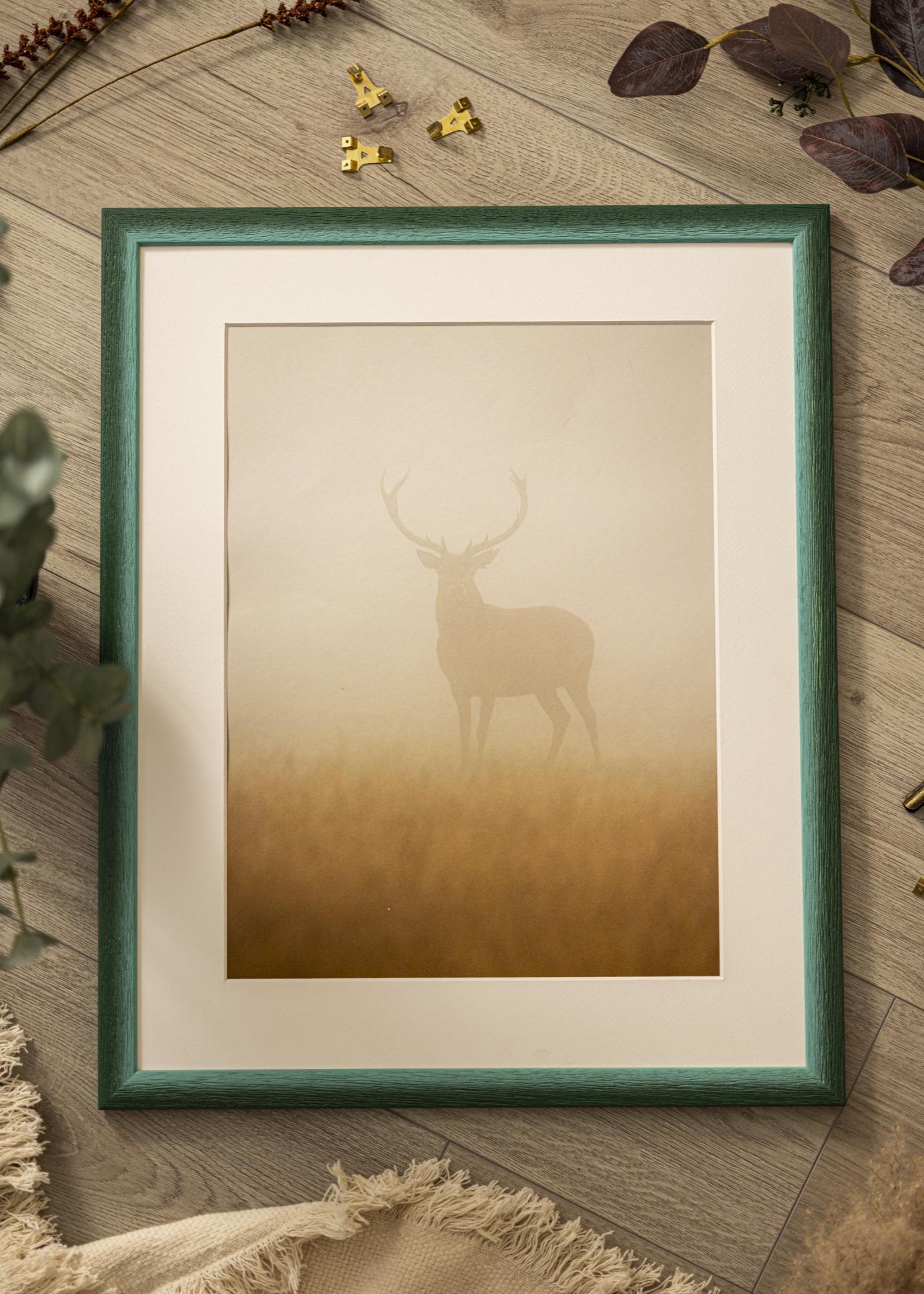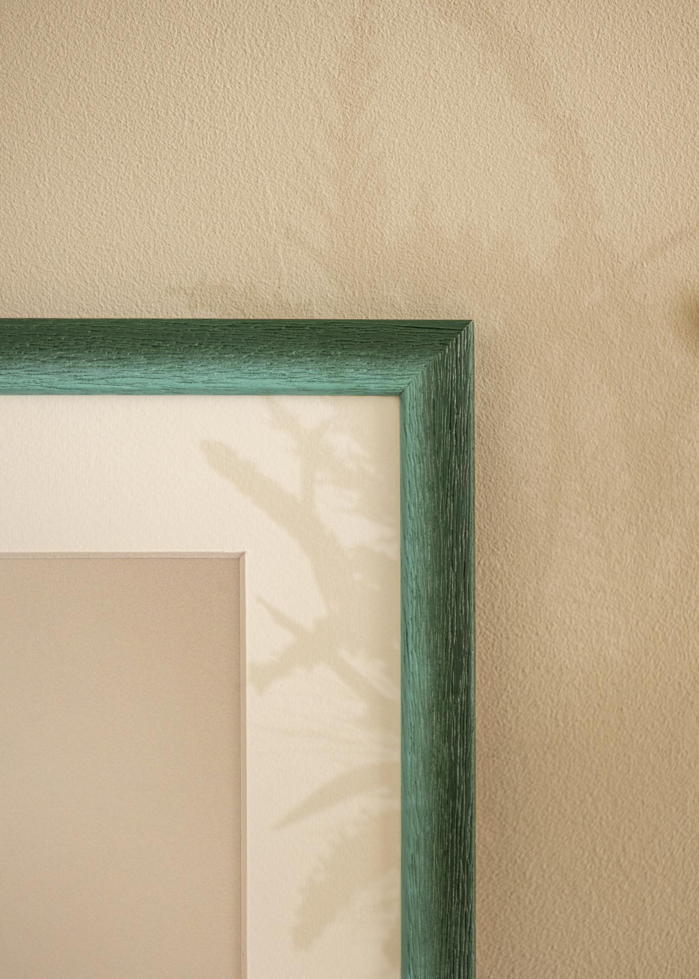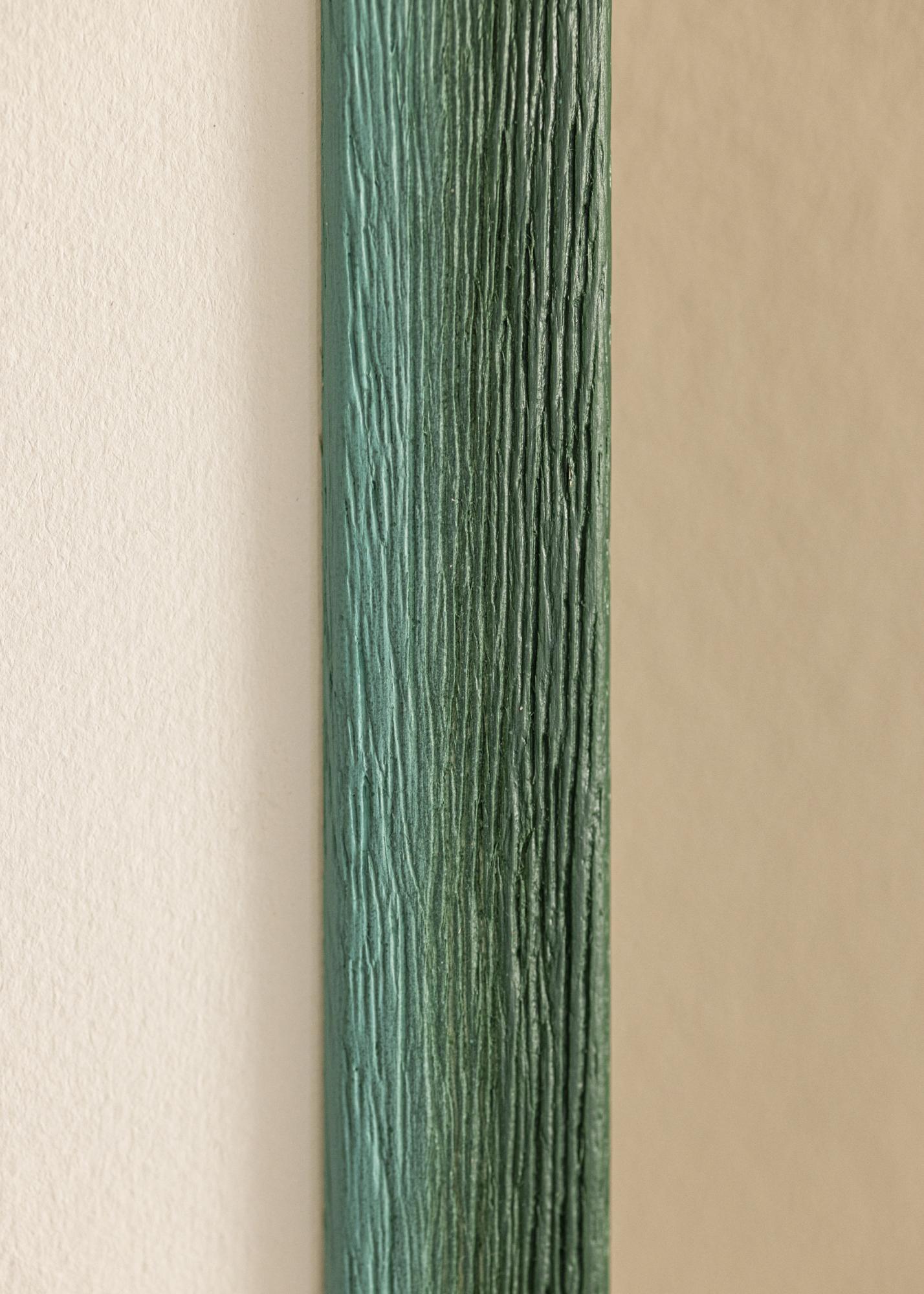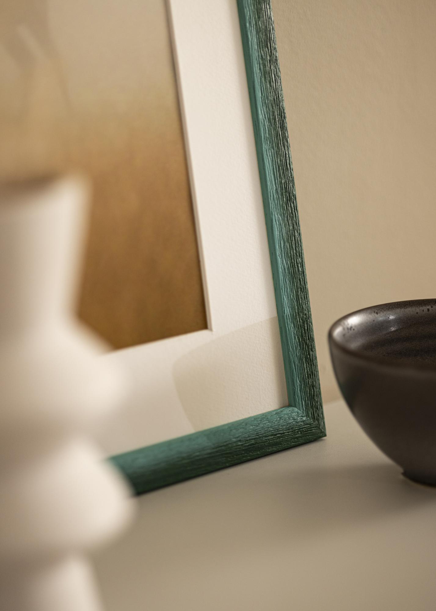 Hillityssä vihreässä värissä on hienovaraisia vaihteluita, jotka antavat elävän ja luonnollisen ilmeen, kun taas näkyvä puun rakenne syvine syineen luo rustiikkisen tunteen. Pinta on mattapintainen, mikä lieventää värin intensiteettiä ja antaa pehmeän vaikutelman, jolloin kuvasi voivat todella olla keskipisteenä. Kapea profiili tasapainottaa rustiikkista ulkonäköä modernilla yksinkertaisuudella.
