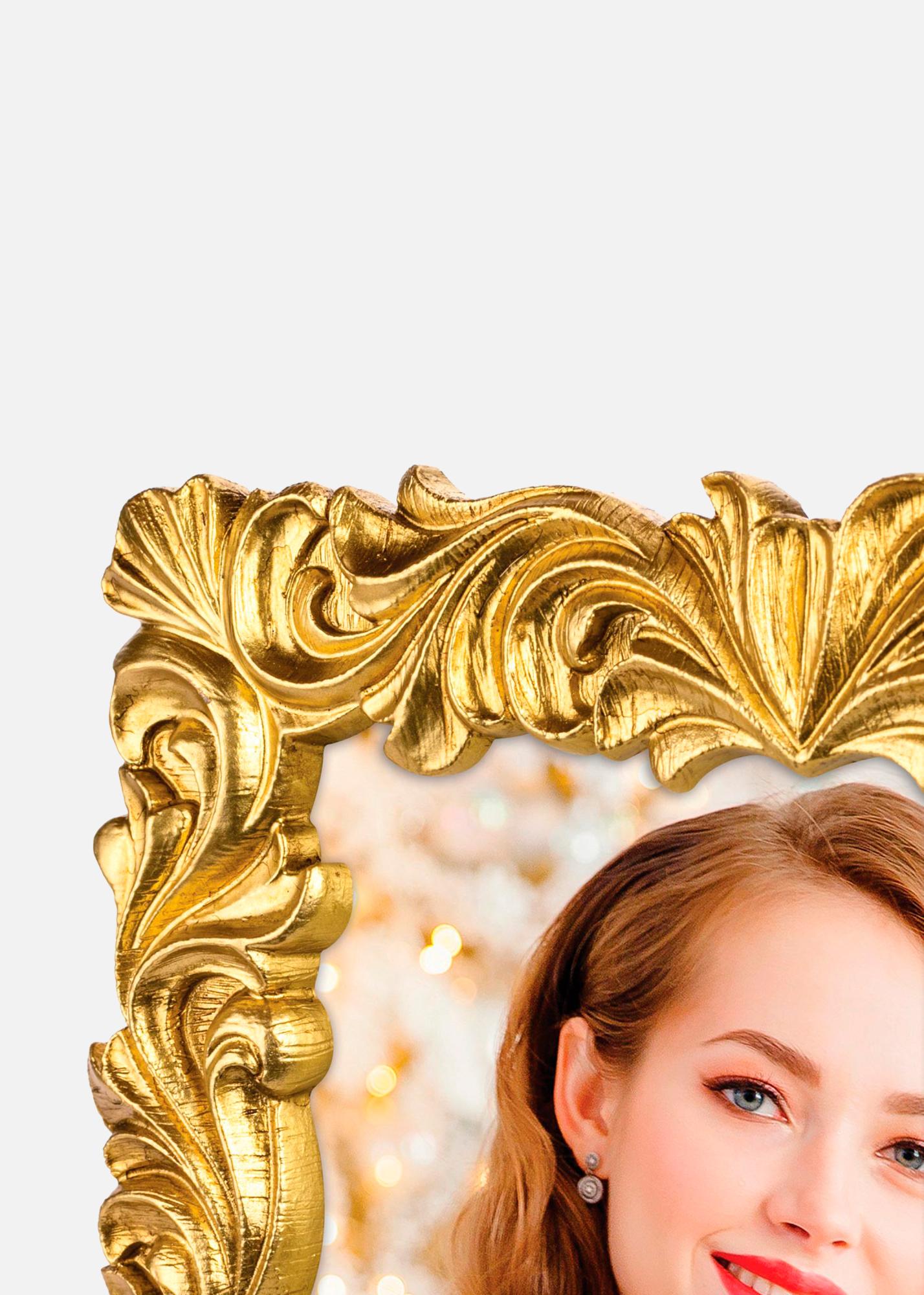 Tämän taulukehyksen kultainen viimeistely tuo lämpimän ja kutsuvan kiillon mihin tahansa huoneeseen. Olipa se sitten seinällä tai pöydällä, tämä kehys tulee keräämään katseita ja täydentämään sisustustasi omalla erityisellä viehätyksellään.