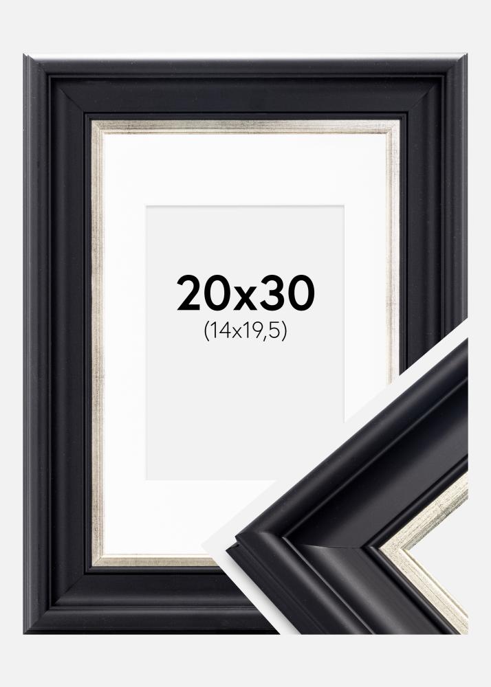 Kehys Dalarna Musta-Hopeanvärinen 20x30 cm - Passepartout Valkoinen 15x21 cm