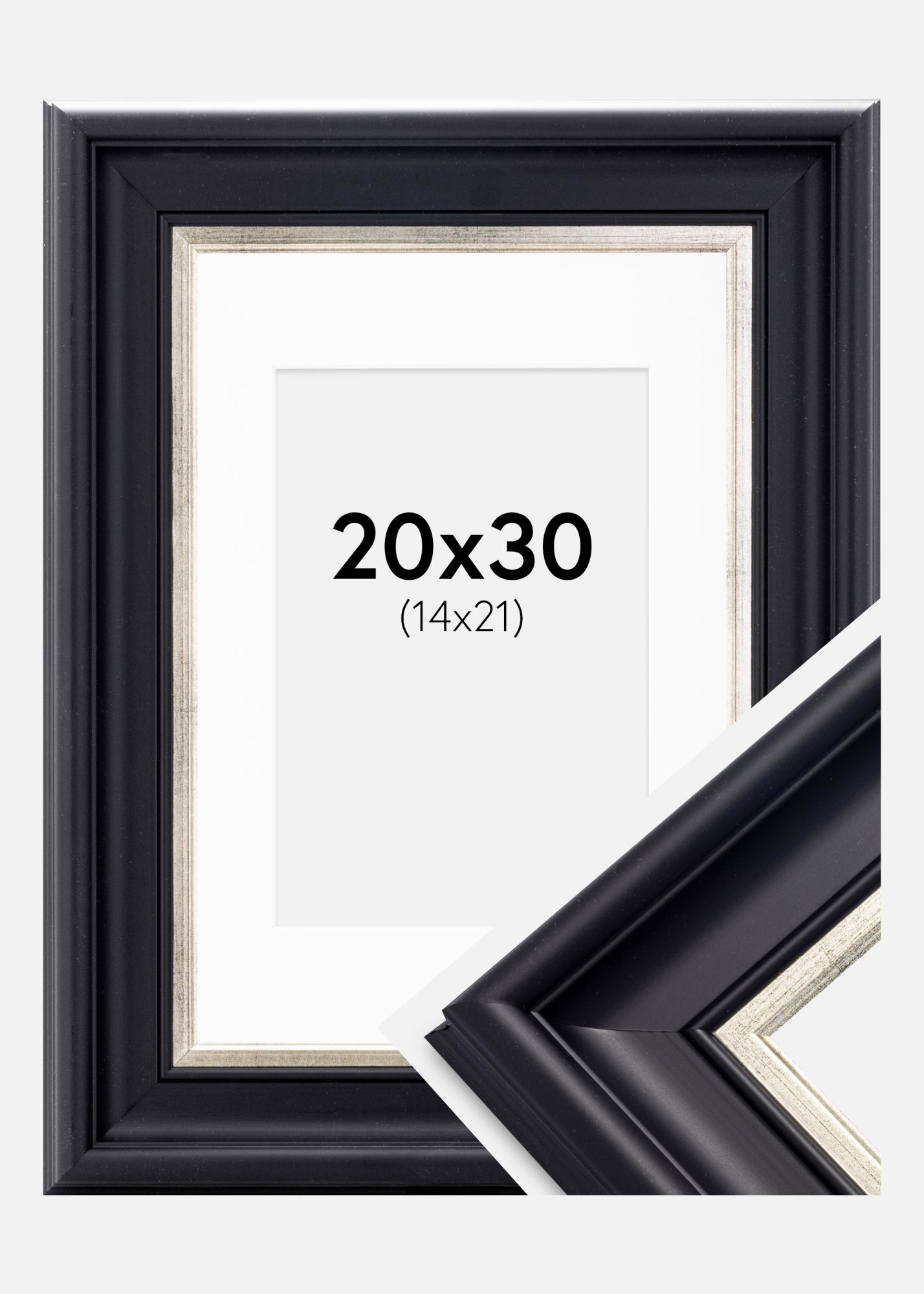 Kehys Dalarna Musta-Hopeanvärinen 20x30 cm - Passepartout Valkoinen 15x22 cm