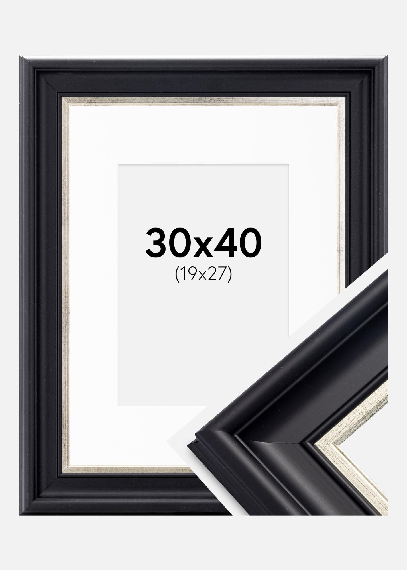 Kehys Dalarna Musta-Hopeanvärinen 30x40 cm - Passepartout Valkoinen 20x28 cm