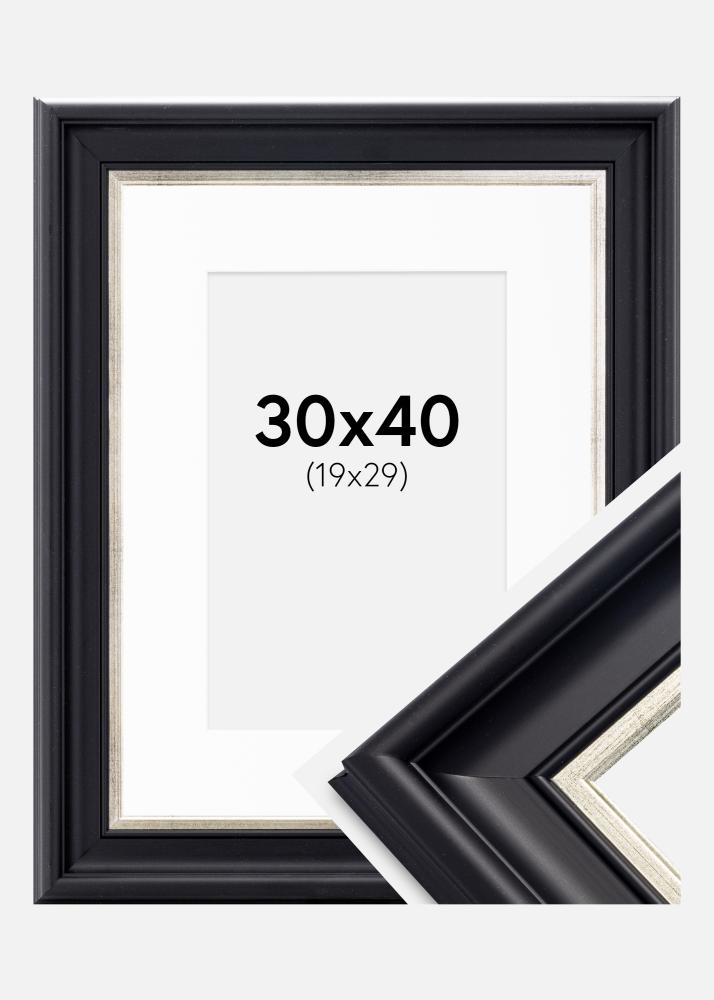 Kehys Dalarna Musta-Hopeanvärinen 30x40 cm - Passepartout Valkoinen 20x30 cm