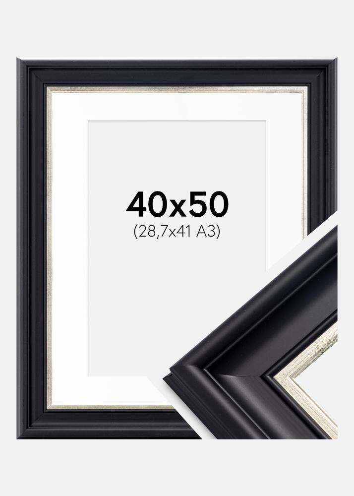 Kehys Dalarna Musta-Hopeanvärinen 40x50 cm - Passepartout Valkoinen 29,7x42 cm
