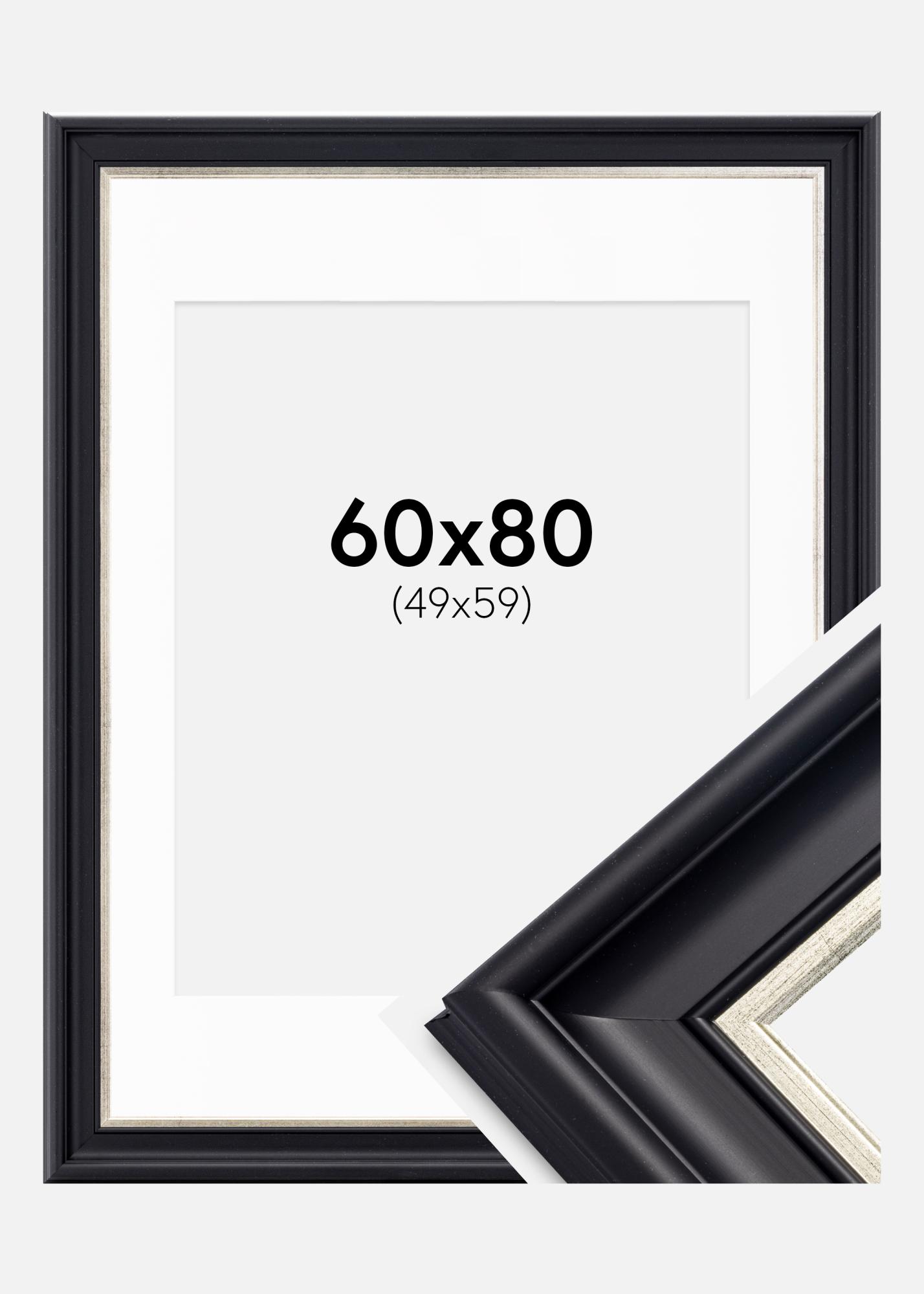 Kehys Dalarna Musta-Hopeanvärinen 60x80 cm - Passepartout Valkoinen 50x60 cm