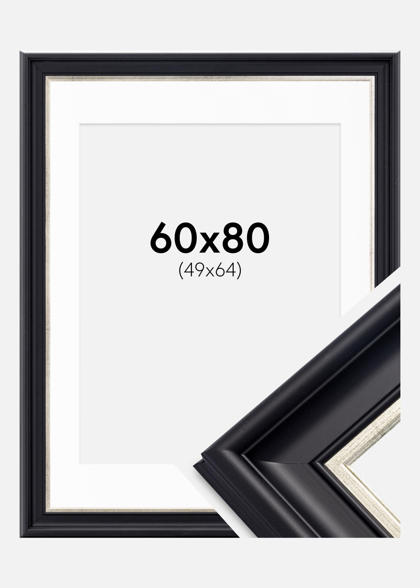 Kehys Dalarna Musta-Hopeanvärinen 60x80 cm - Passepartout Valkoinen 50x65 cm