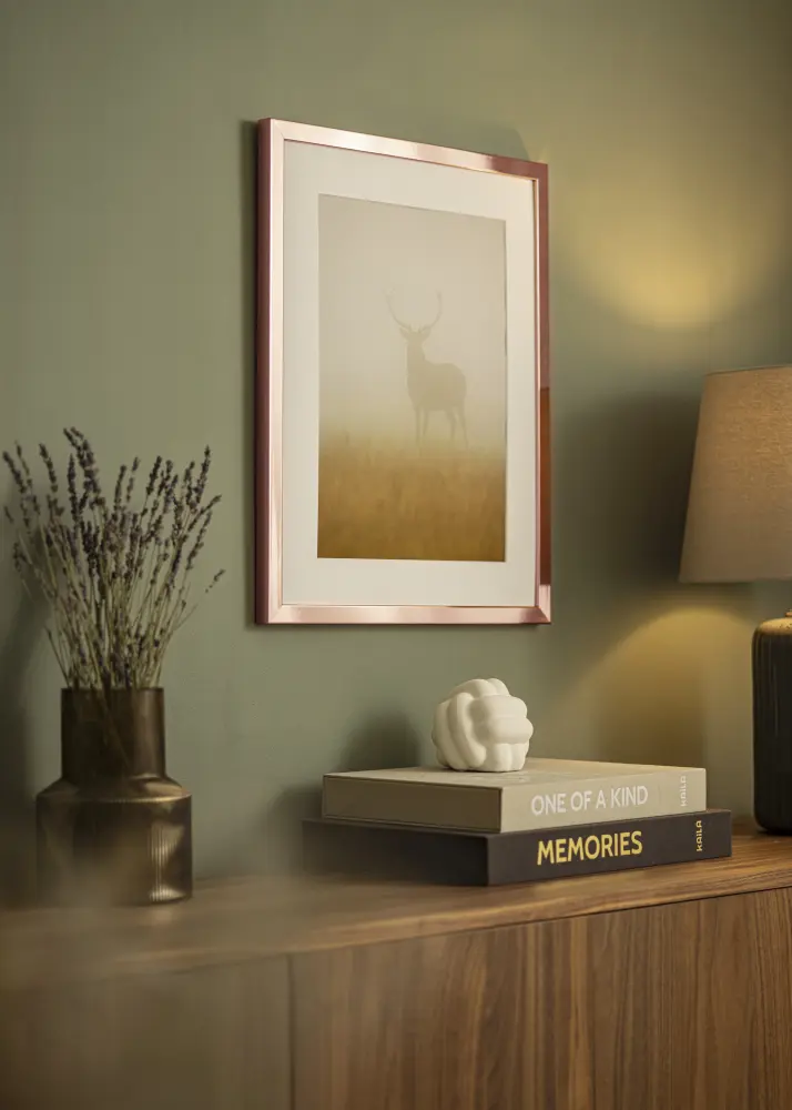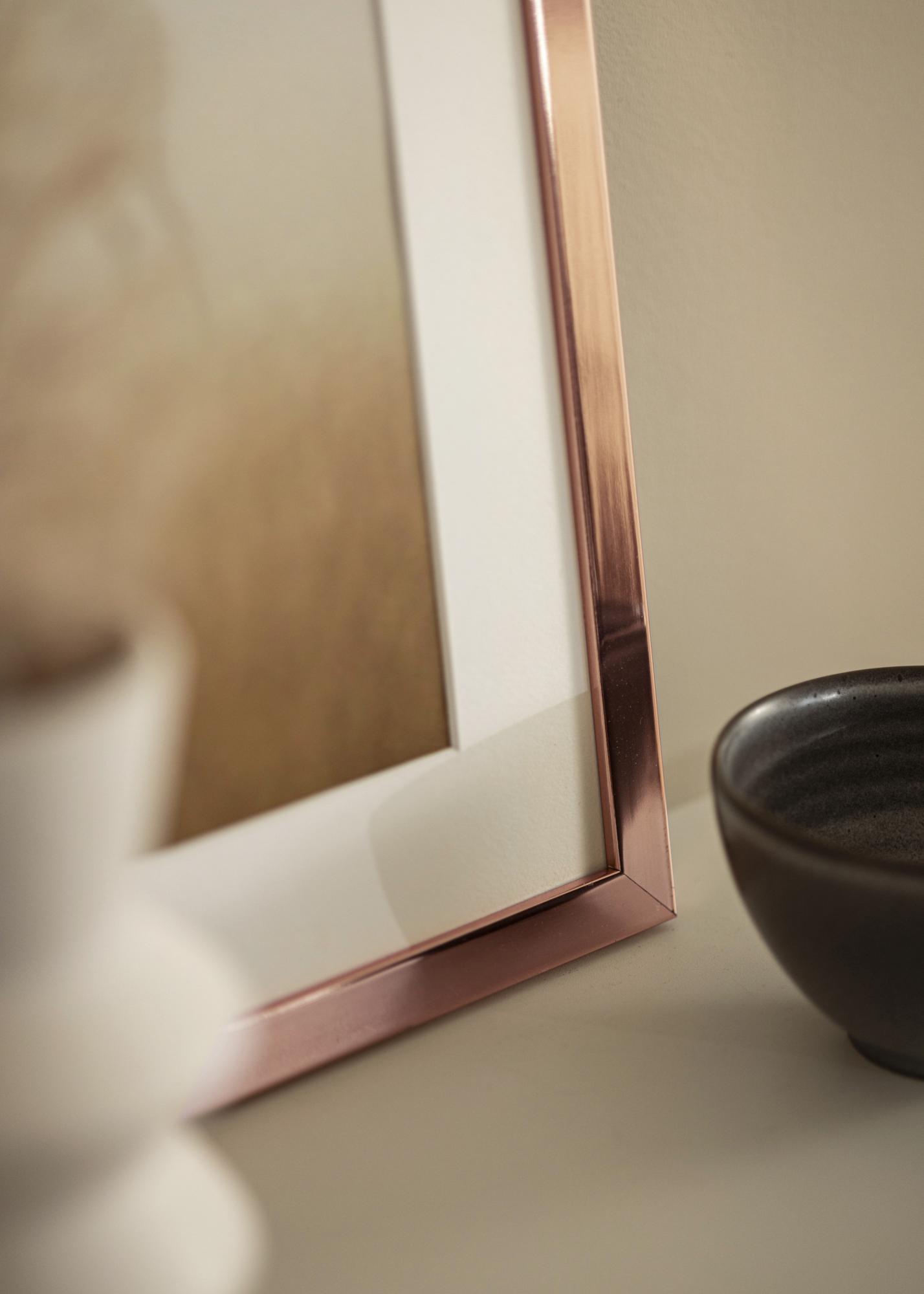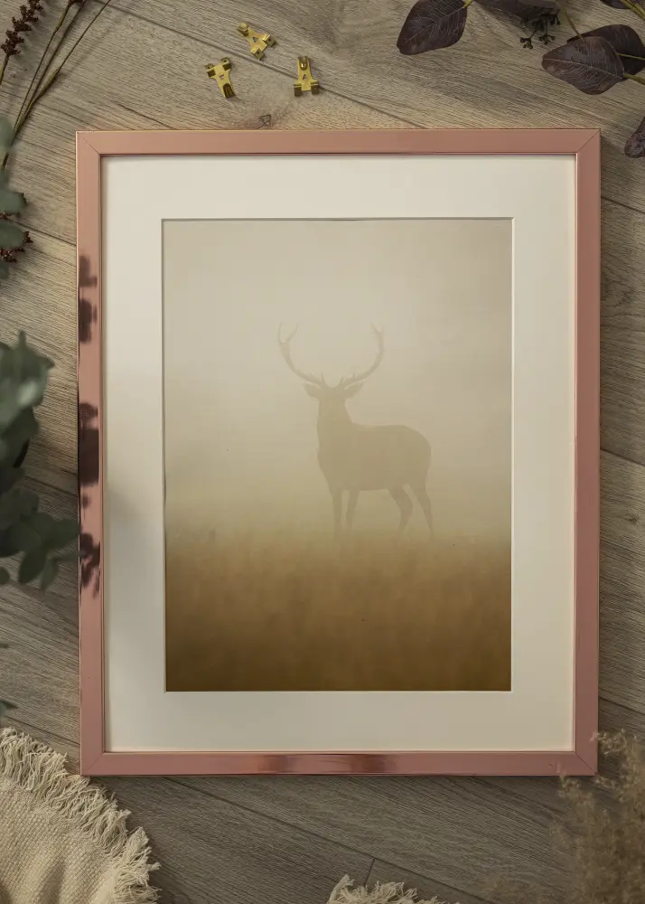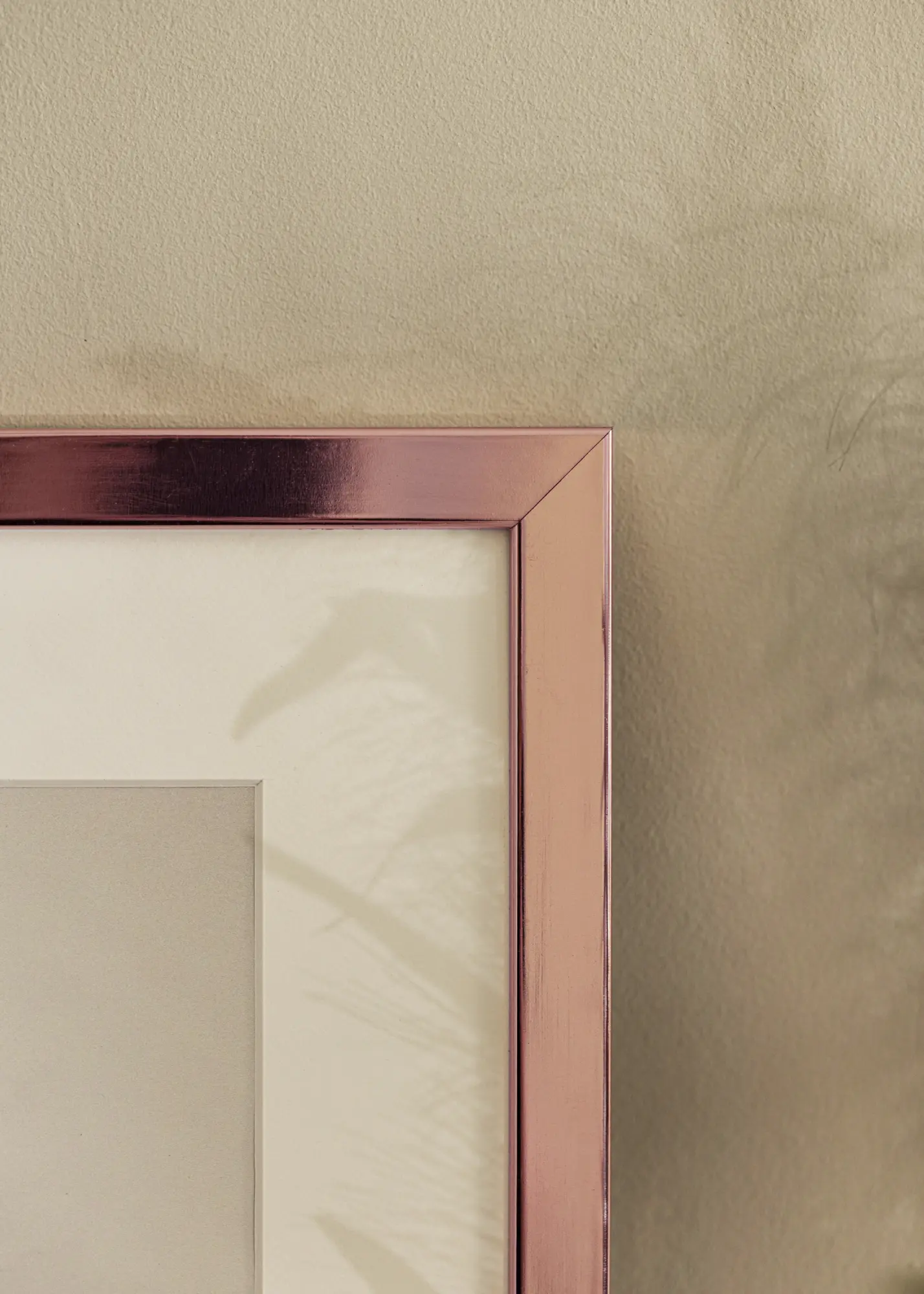Ruusukullan värinen viimeistely antaa ylellisen tunteen ja metallinhohtoinen pinta omaa pehmeän loiston, joka luo hienovaraisia vivahde-eroja värin syvyydessä valaistuksen kulmasta riippuen. Tämä tekee kehyksestä paitsi valokuvasi täydentäjän, myös osan kotisi sisustusta.