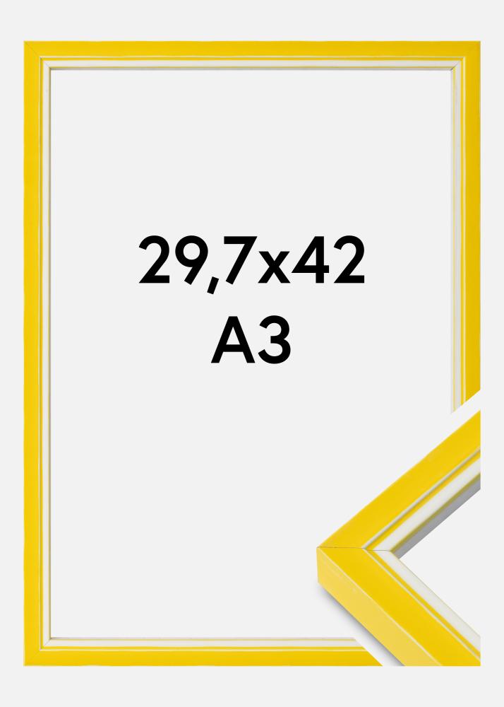 Anna seinällesi värikkyyttä tällä huomiota herättävällä 29,7x42 cm (A3) kokoisella taulukehyksellä. Leikkisässä keltaisessa ja valkoisessa yhdistelmässään tämä kuvakehys antaa lisäulottuvuuden taideteoksellesi tai valokuvallesi. Se ei ole vain visuaalinen katseenvangitsija, vaan myös käytännöllinen kirkkaalla ja särkymättömällä akryylilasillaan, joka suojaa kuviasi optimaalisesti.