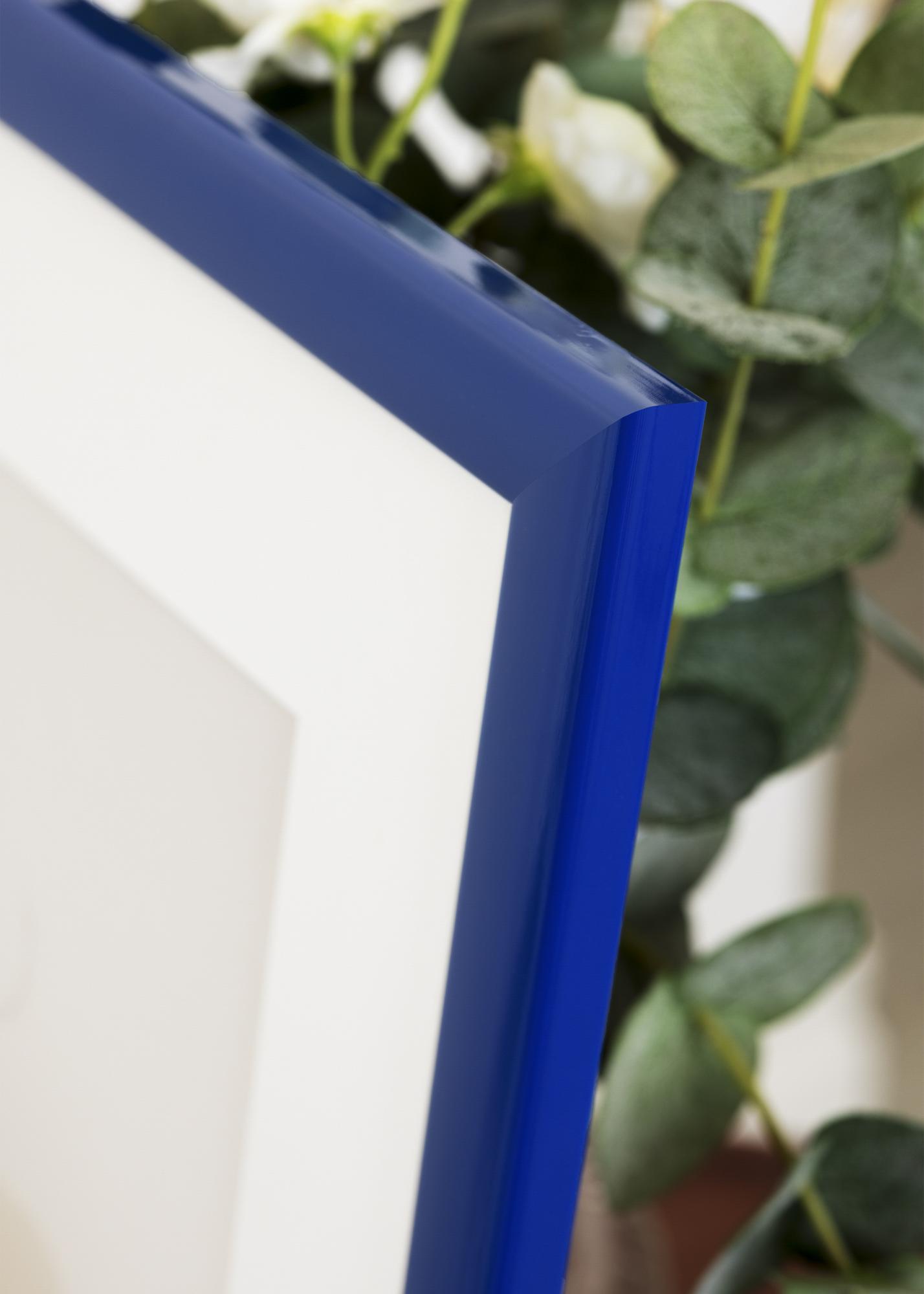 Kehys on valmistettu puusta ja siinä on 23 mm leveä kehyslista sekä 13 mm syvyys. Ohut profiili ja terävät kulmat luovat minimalistisen ilmeen, jolloin kuvasi pääsee todella esille. Kylläinen Sininen väri tuo harmonisen lisän huoneeseen ja sopii hyvin moderniin, skandinaaviseen tai pelkistettyyn sisustukseen.