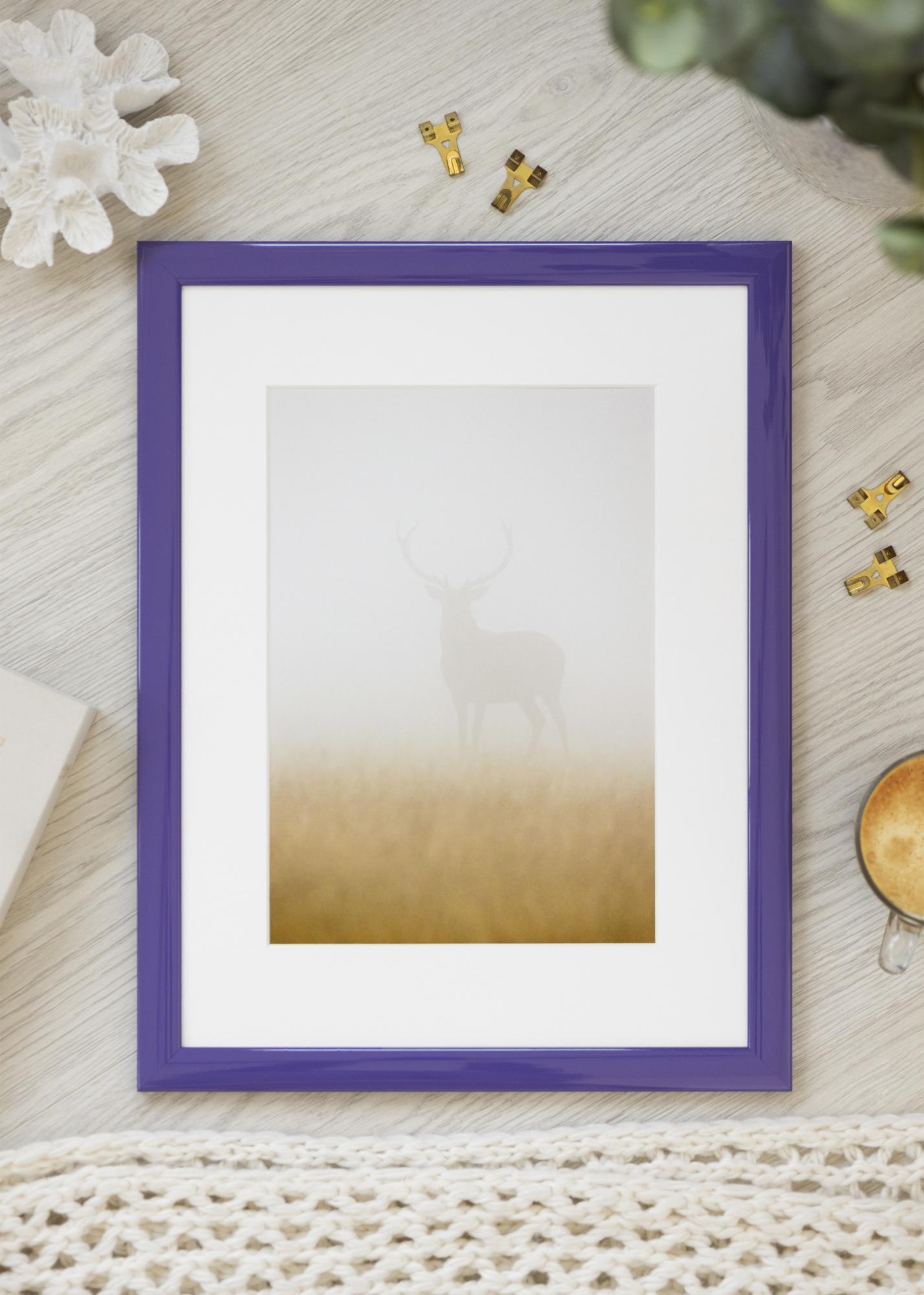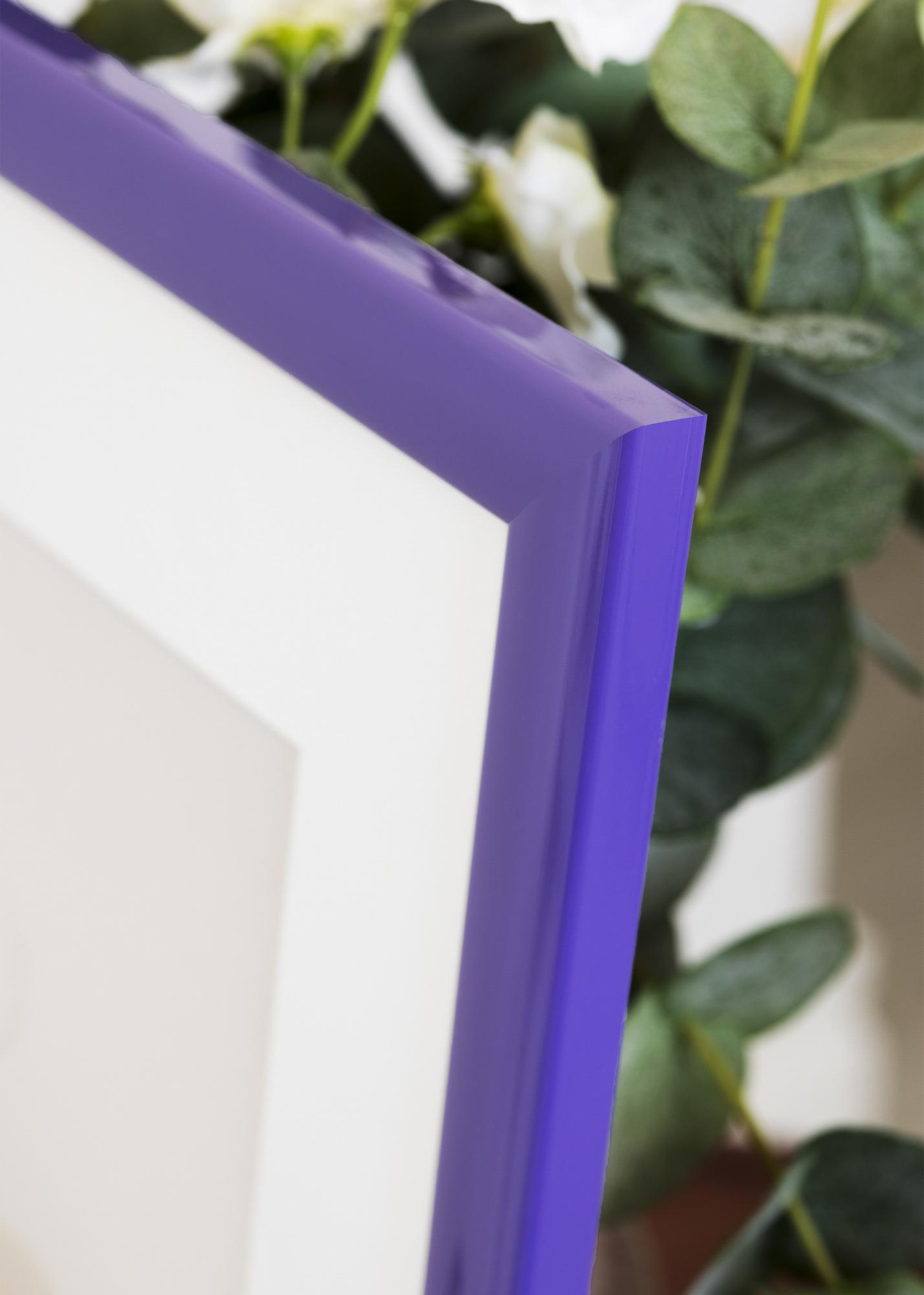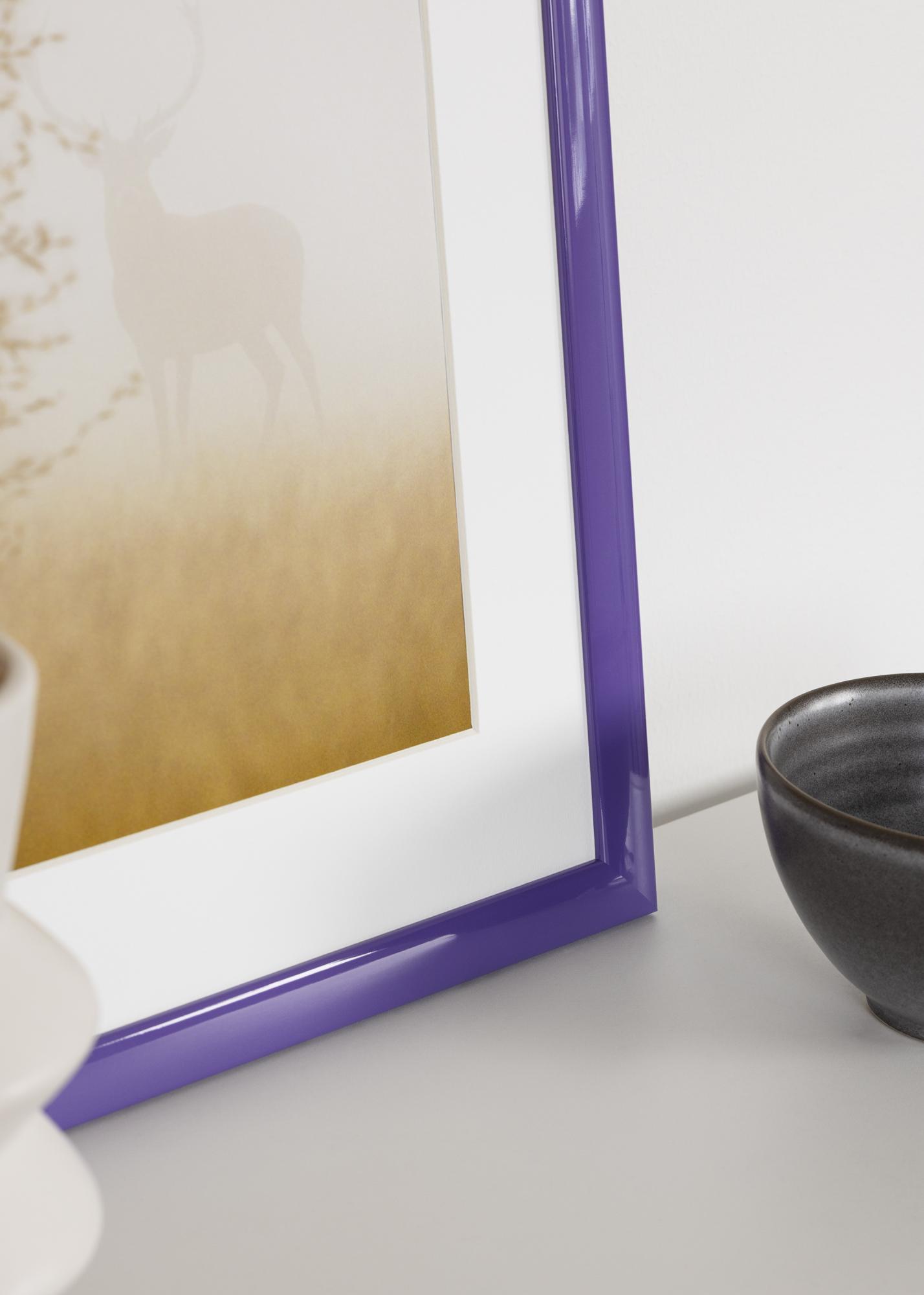 Tämä puinen Kehys on moderni ja tyylikäs, ja siinä on sileä, kiiltävä pinta syvän Violetti sävyssä. Kehyslista on 23 mm leveä ja 13 mm syvä, mikä antaa minimalistisen ilmeen ja nostaa kuvasi keskiöön. Kehys sopii täydellisesti 42x59,4 cm (A2) kokoisille kuville, joten se on ihanteellinen sekä valokuville että julisteille.