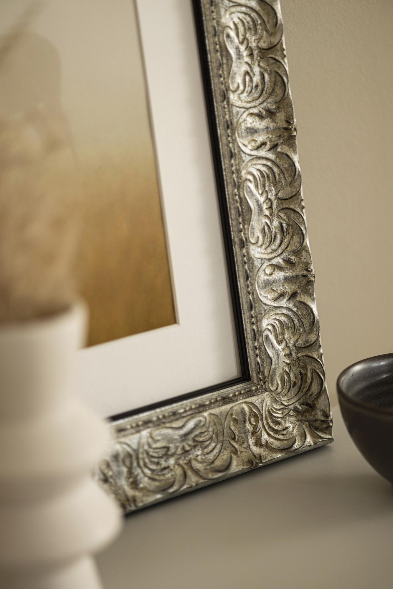 Kehys Durham Hopea on elegantti ja tyylikäs valokuvakehys, joka antaa kuvillesi sofistikoituneen kehystyksen. Sen hopeanvärinen pinta ja antiikkiviimeistely luovat kotiisi rustiikkisen mutta modernin tunnelman. Kehyksen pinnan koristeellinen reliefi lisää sen ainutlaatuista luonnetta ja tekee siitä täydellisen valinnan korostamaan suosikkivalokuviasi tai taideteoksiasi.