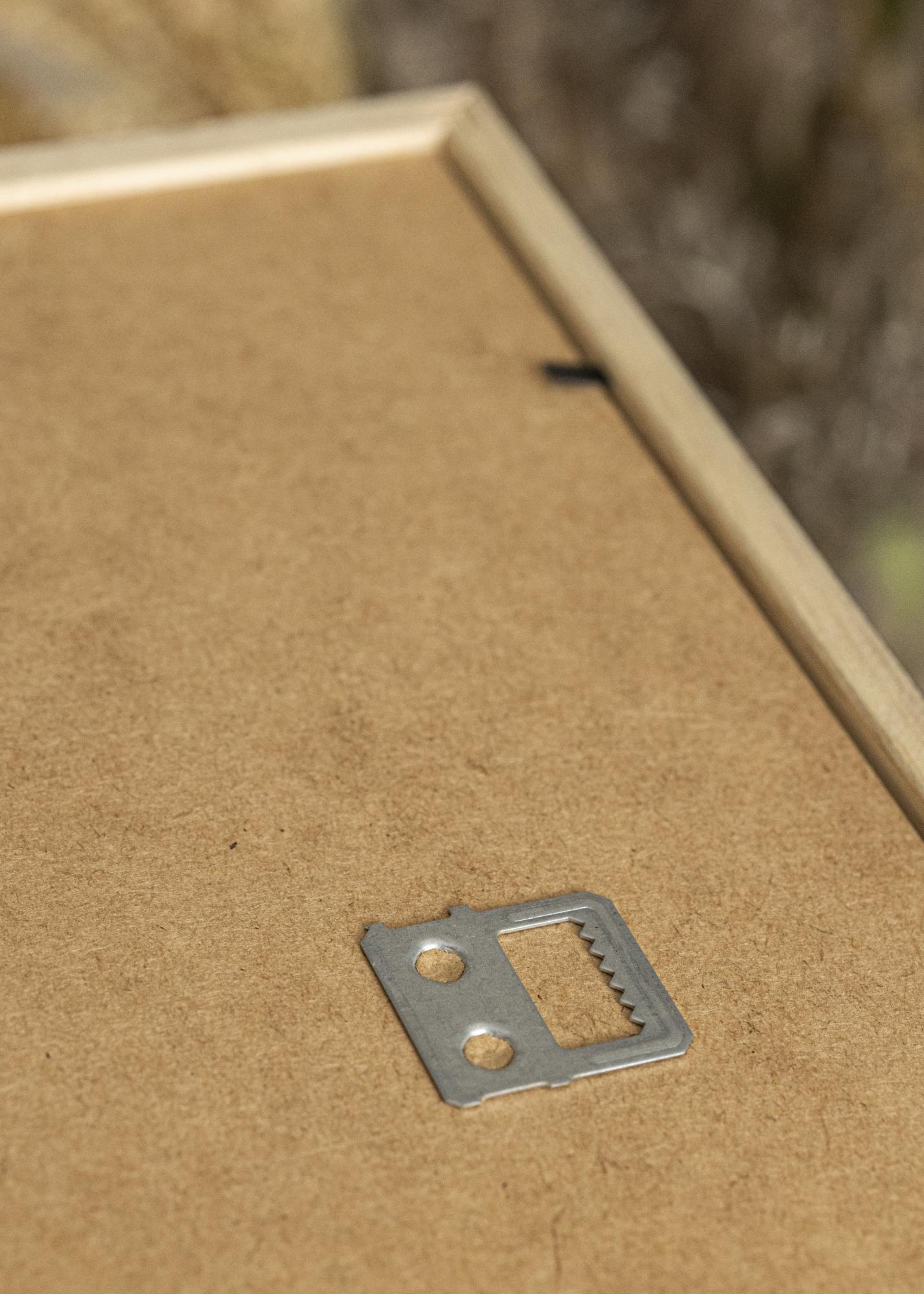 Kehyksessä on MDF:stä valmistettu takakappale, jota pitää paikoillaan pienet niitit, jotka voit taivuttaa ylös ja näin irrottaa takakappaleen ja kehystää kuvasi.