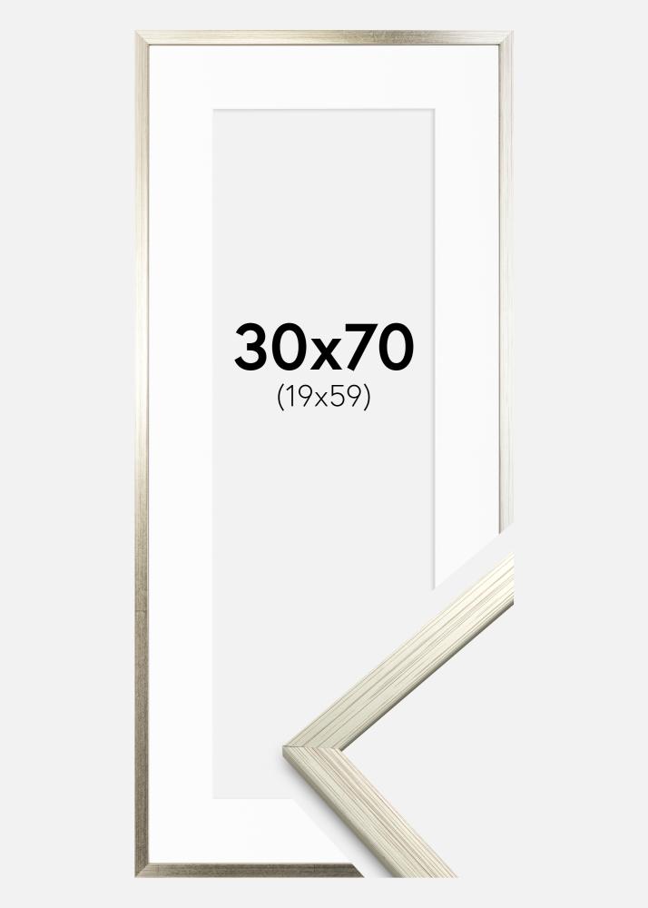 Kehys Edsbyn Hopeanvärinen 30x70 cm - Passepartout Valkoinen 20x60 cm