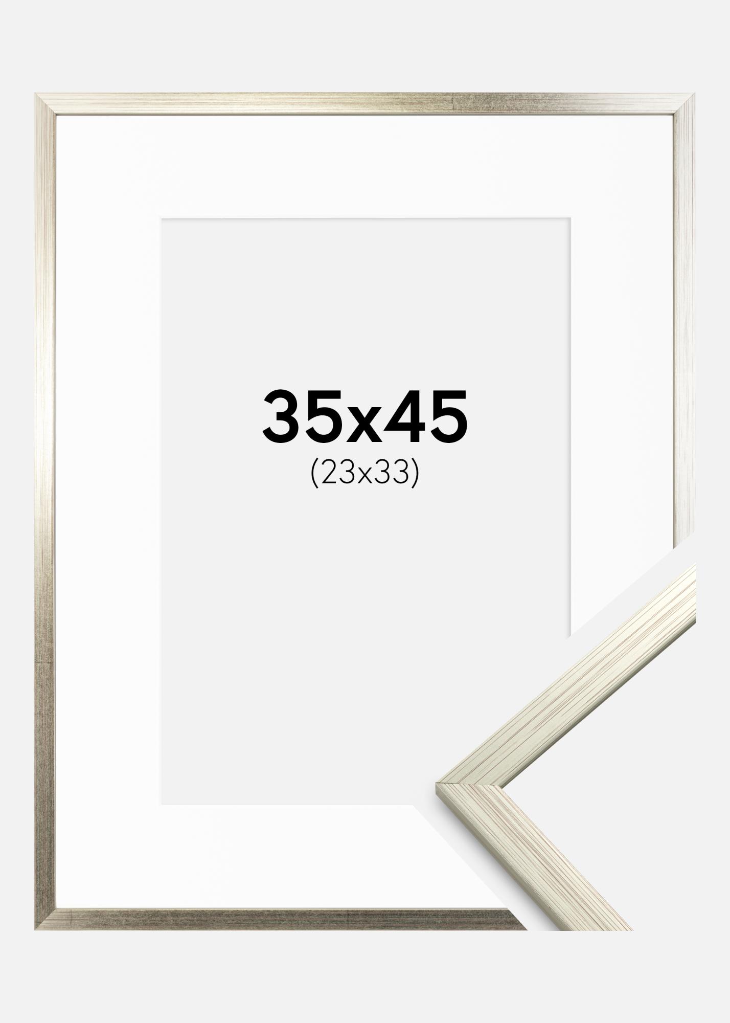 Kehys Edsbyn Hopeanvärinen 35x45 cm - Passepartout Valkoinen 24x34 cm