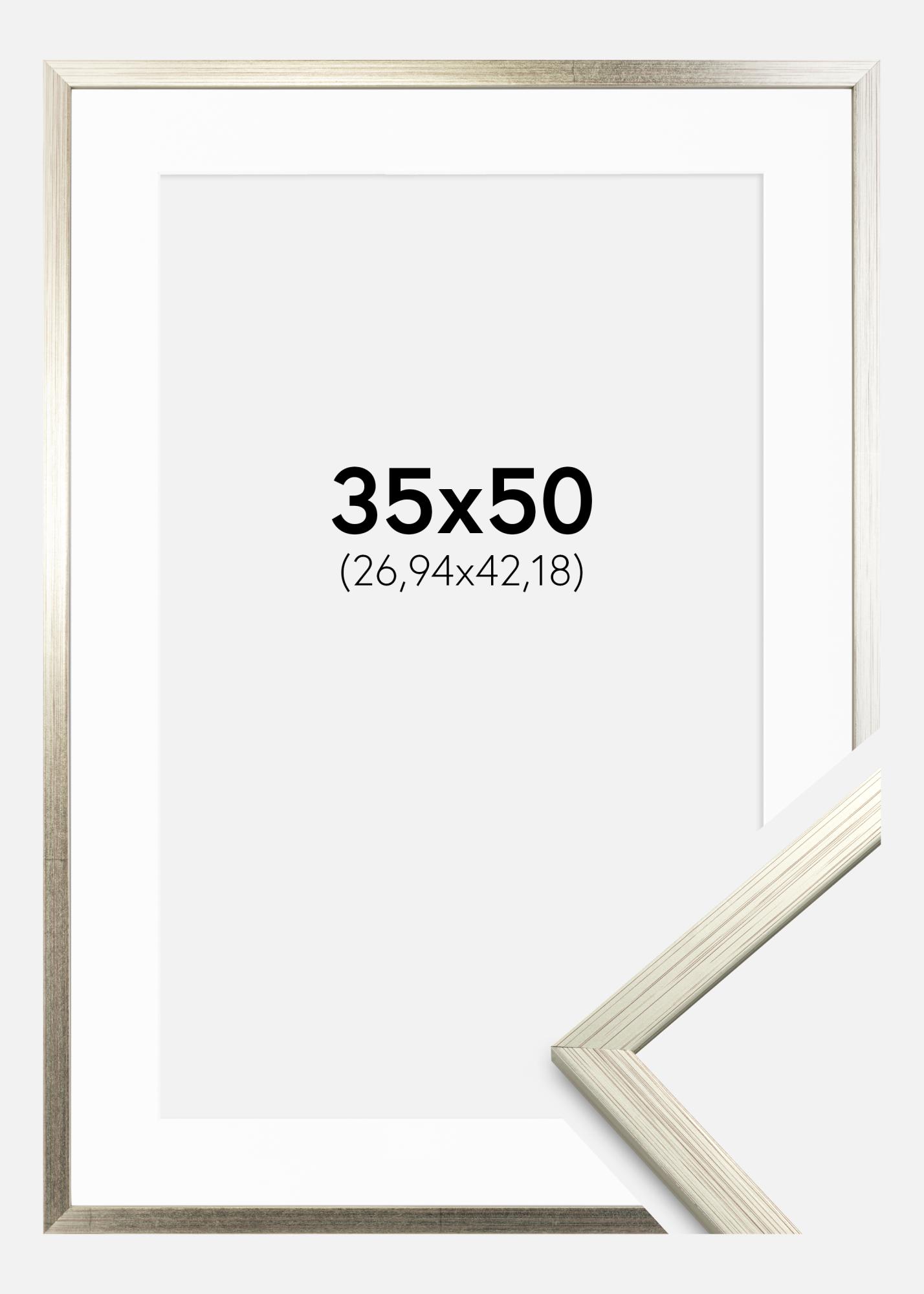 Kehys Edsbyn Hopeanvärinen 35x50 cm - Passepartout Valkoinen 11x17 inches