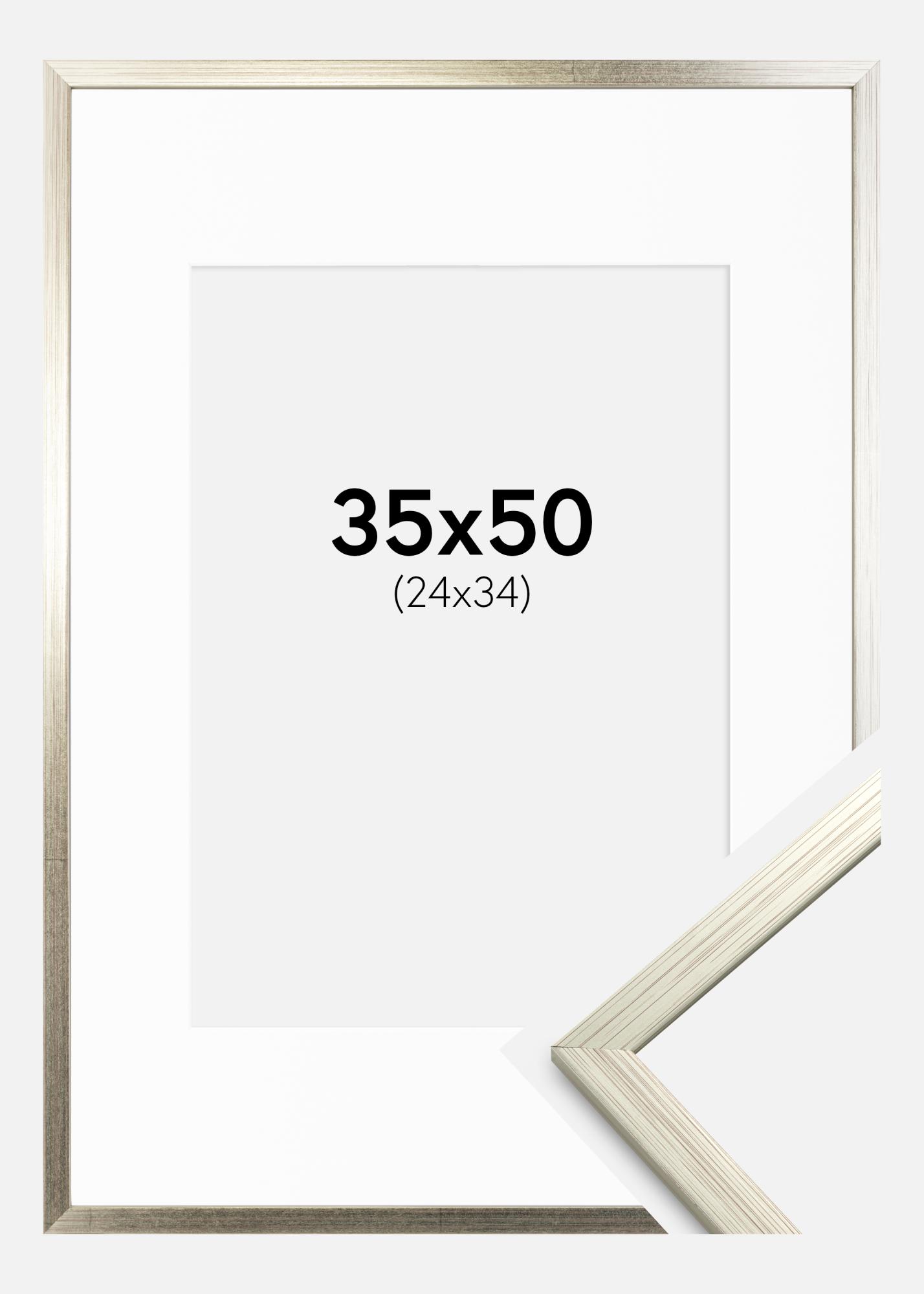 Kehys Edsbyn Hopeanvärinen 35x50 cm - Passepartout Valkoinen 25x35 cm