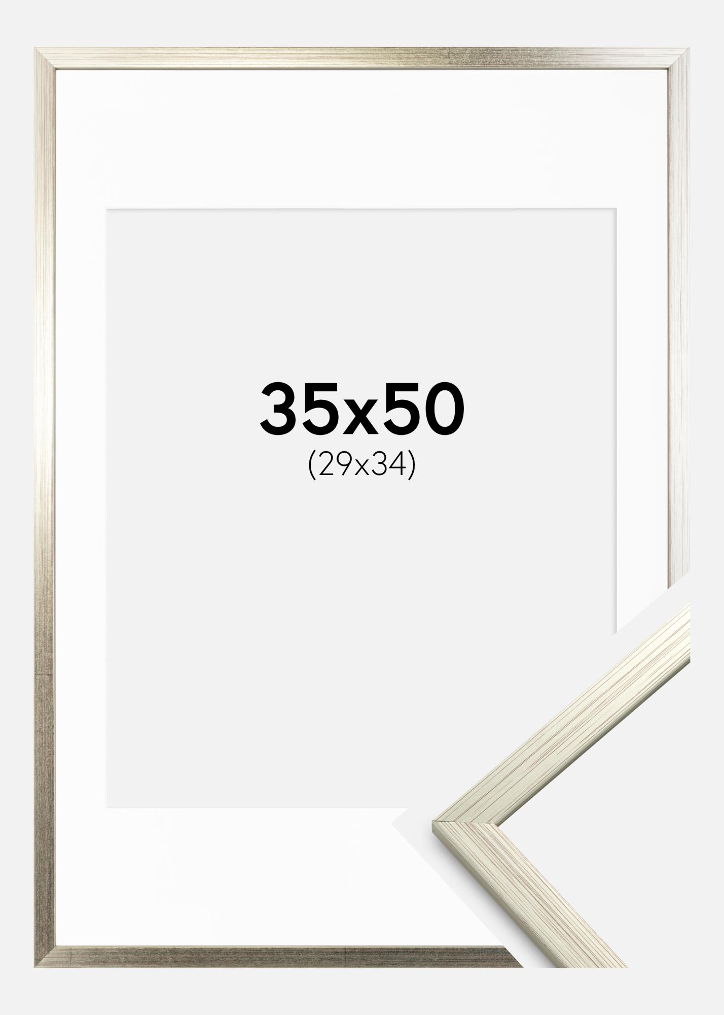 Kehys Edsbyn Hopeanvärinen 35x50 cm - Passepartout Valkoinen 30x35 cm