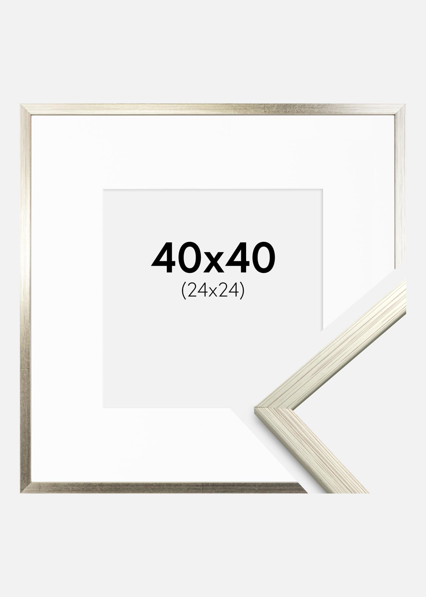 Kehys Edsbyn Hopeanvärinen 40x40 cm - Passepartout Valkoinen 25x25 cm