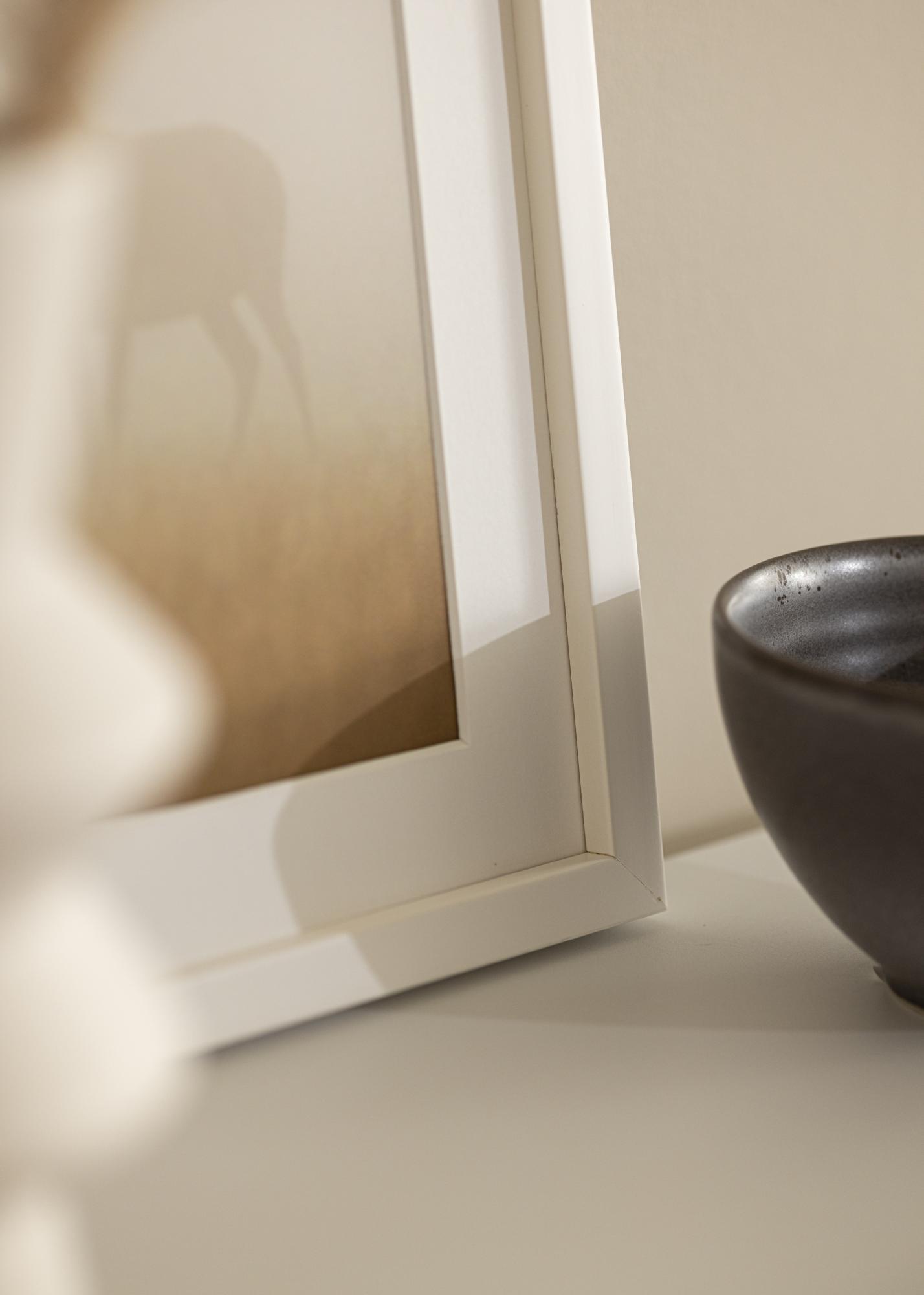 Tämä on tyylikäs maalattu puinen laatukehys. Kehyslistan syvyys on kokonaiset 22 mm, joka tekee kehyksestä huomiota herättävän sisustusyksityiskohdan, joka tulee hieman ulos seinästä. Kehyksen valkoinen sävy täydentää sekä klassisia että moderneja kuva-aiheita ilman että se varastaisi huomion kuvilta itseltään.
