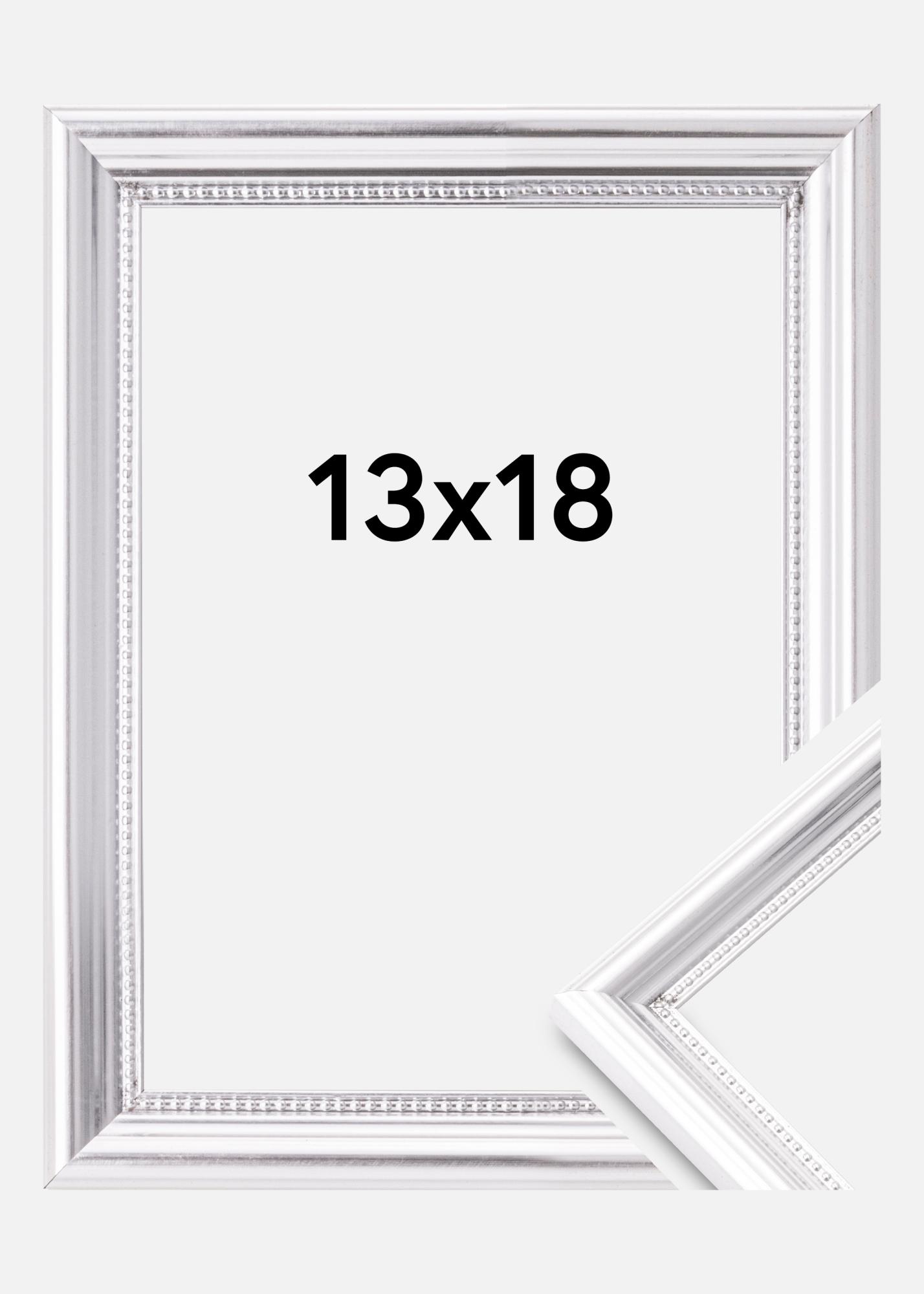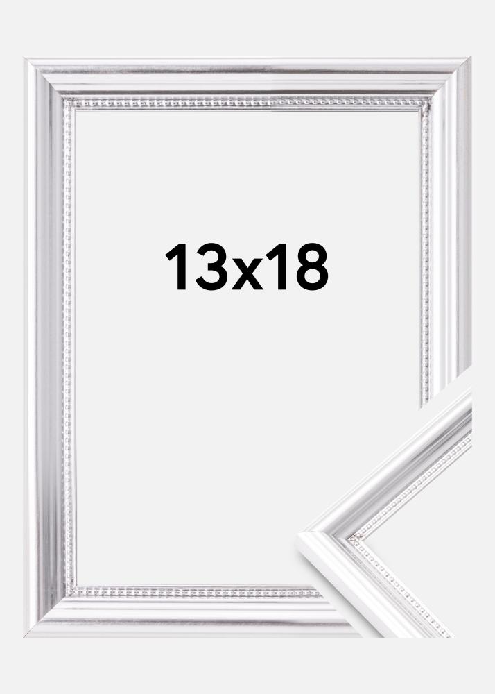 Anna muistoillesi arvokas kehys tällä elegantilla hopeanvärisellä valokuvakehyksellä. Kooltaan 13x18 cm se sopii täydellisesti suosikkivalokuviisi tai taideteoksiisi. Kehyksen 20 mm leveä reunus antaa erottuvan ilmeen sisustukseesi, kun taas sen 17 mm syvät profiilit luovat klassisen retro-tunnelman.