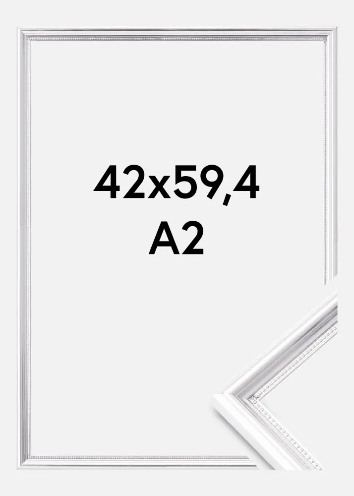 Mitat 42 x 59,4 cm tekevät tästä hopeakehyksestä täydellisen A2-kokoisille taideteoksille, joten se sopii täydellisesti kotiin tai toimistoon. Olipa kyseessä sitten taidenäyttely tai sisustuksen personointi, tämä kehys tulee korostamaan valitsemaasi motiivia tyylikkäällä tavalla.