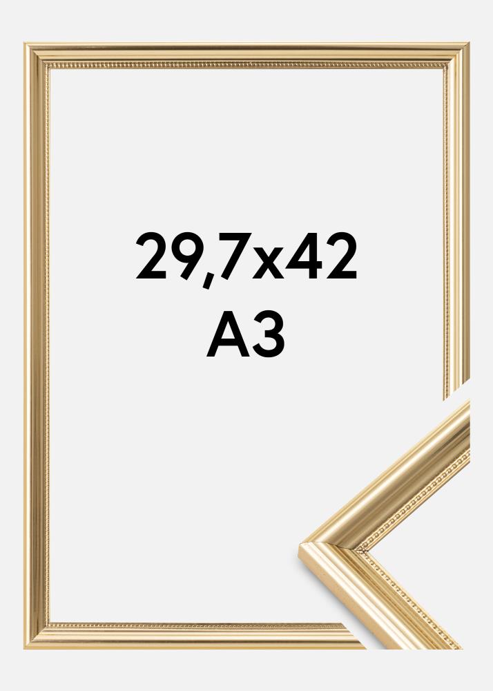 Anna seinällesi elegantti kosketus tällä 29,7 x 42 cm (A3) kultaisella valokuvakehyksellä. Sen retrotyylinen profiili antaa kotiisi klassista charmia. Kehyksen 20 mm leveä ja 17 mm syvä profiili tuo hienostuneen reunan lempikuvillesi tai taiteellesi.