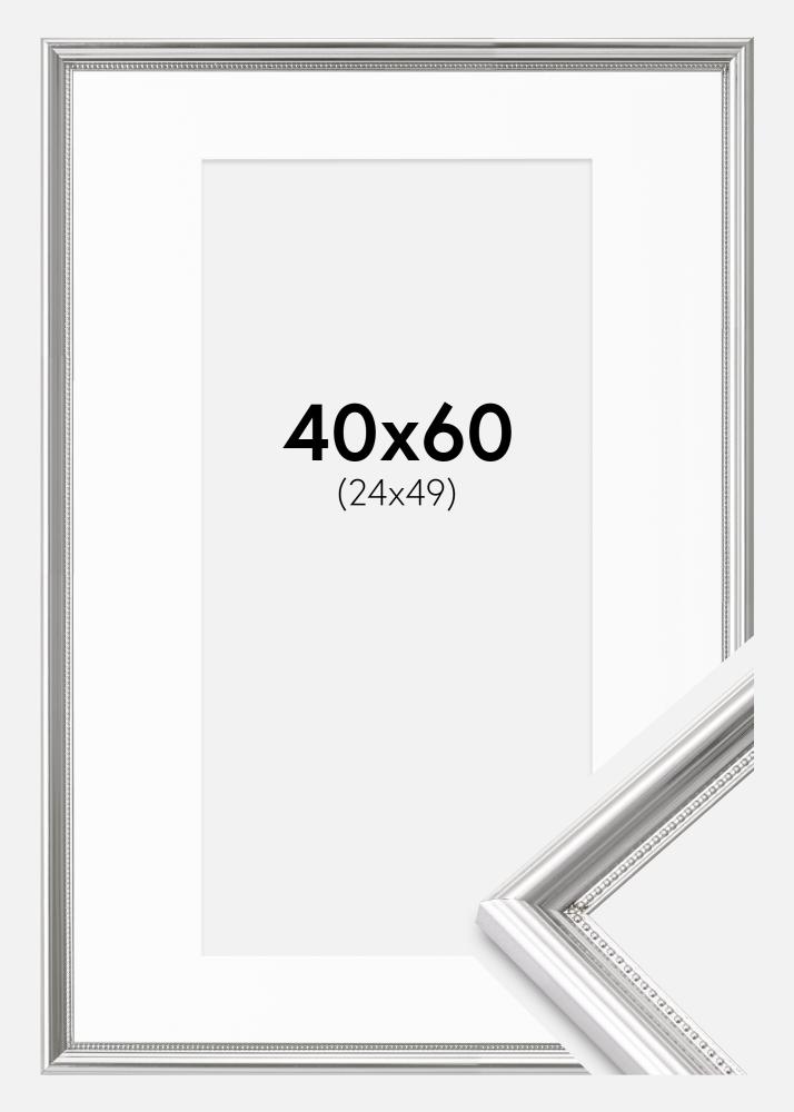 Kehys Gala Hopeanvärinen 40x60 cm - Passepartout Valkoinen 25x50 cm