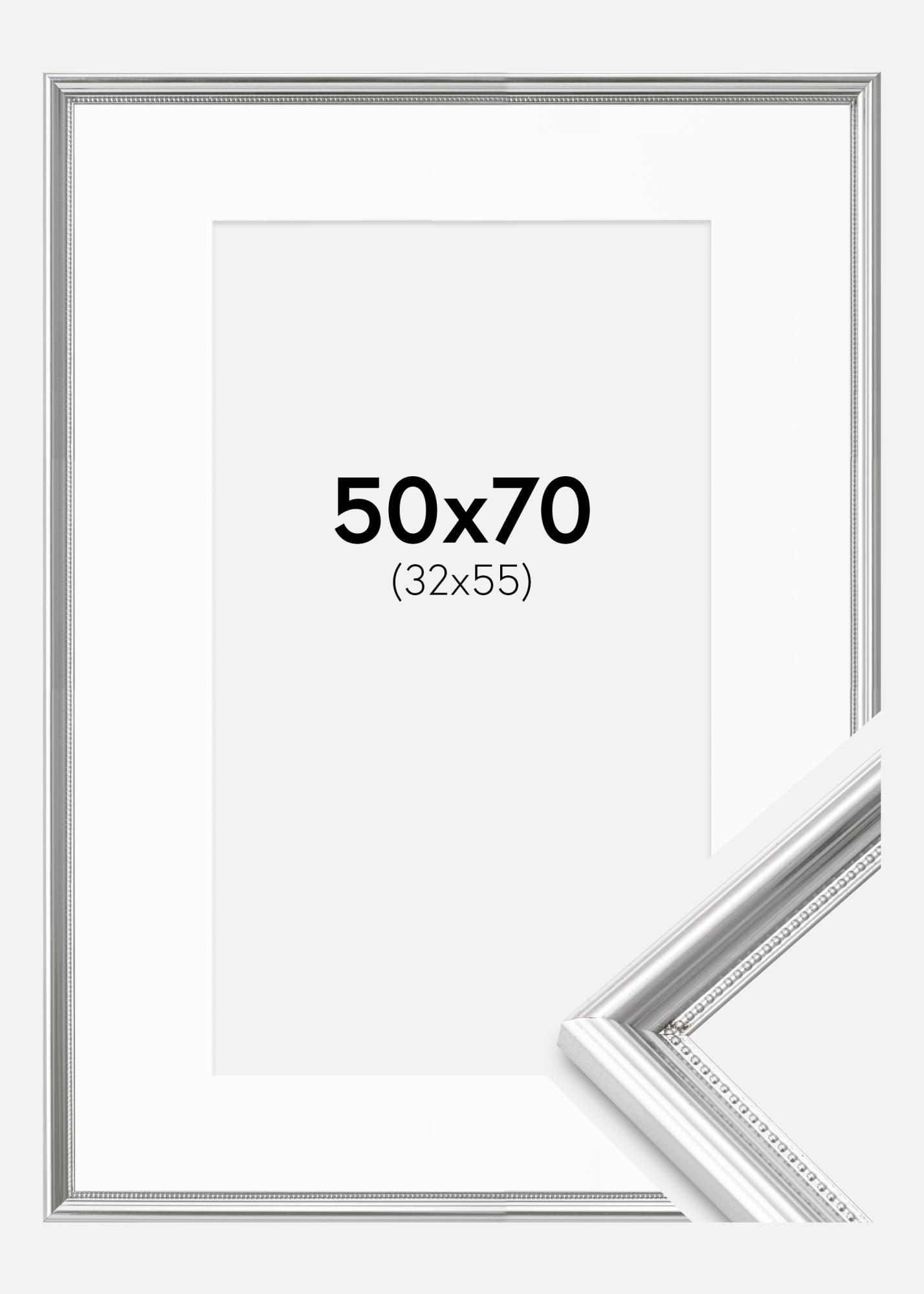 Kehys Gala Hopeanvärinen 50x70 cm - Passepartout Valkoinen 33x56 cm