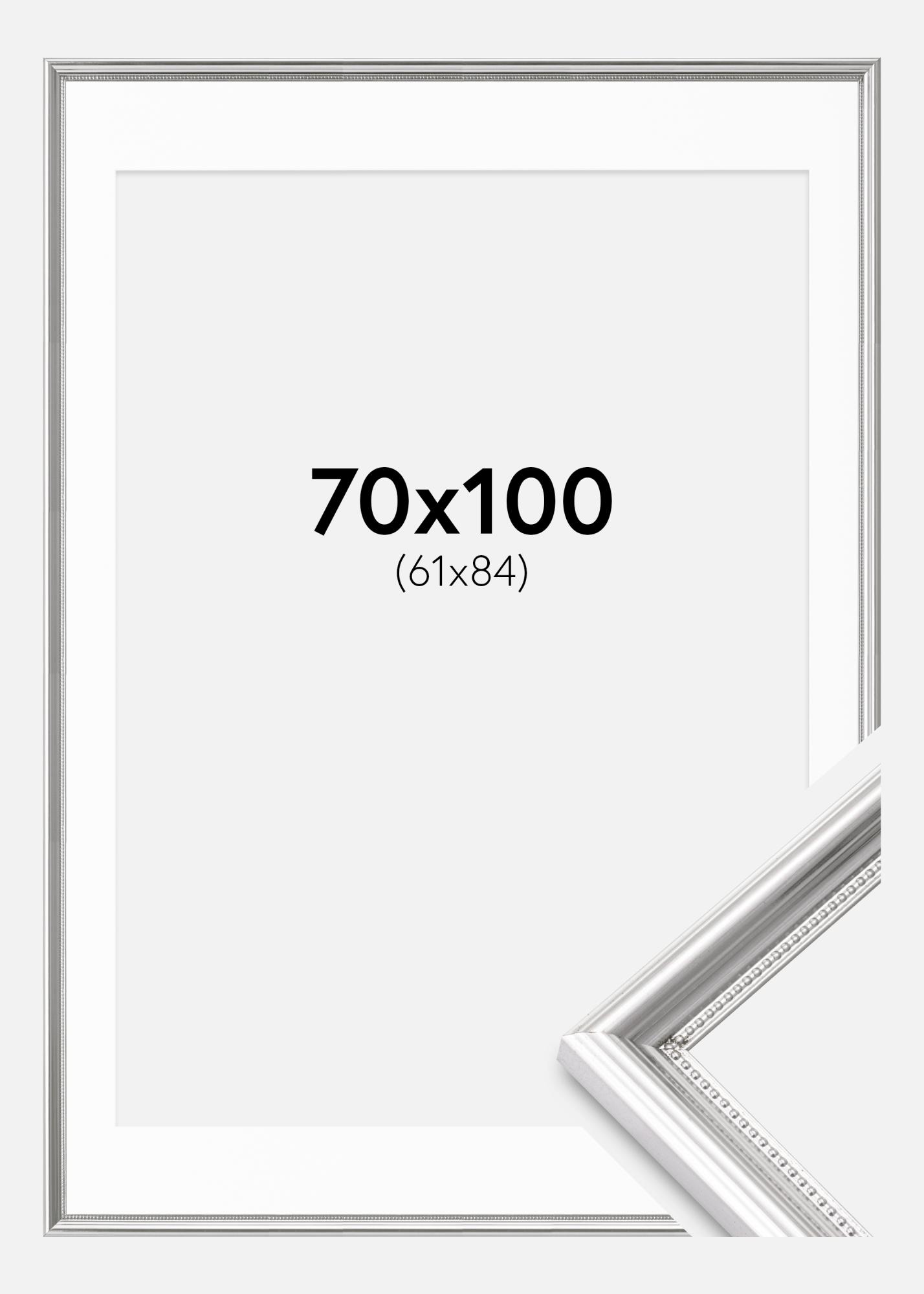 Kehys Gala Hopeanvärinen 70x100 cm - Passepartout Valkoinen 62x85 cm