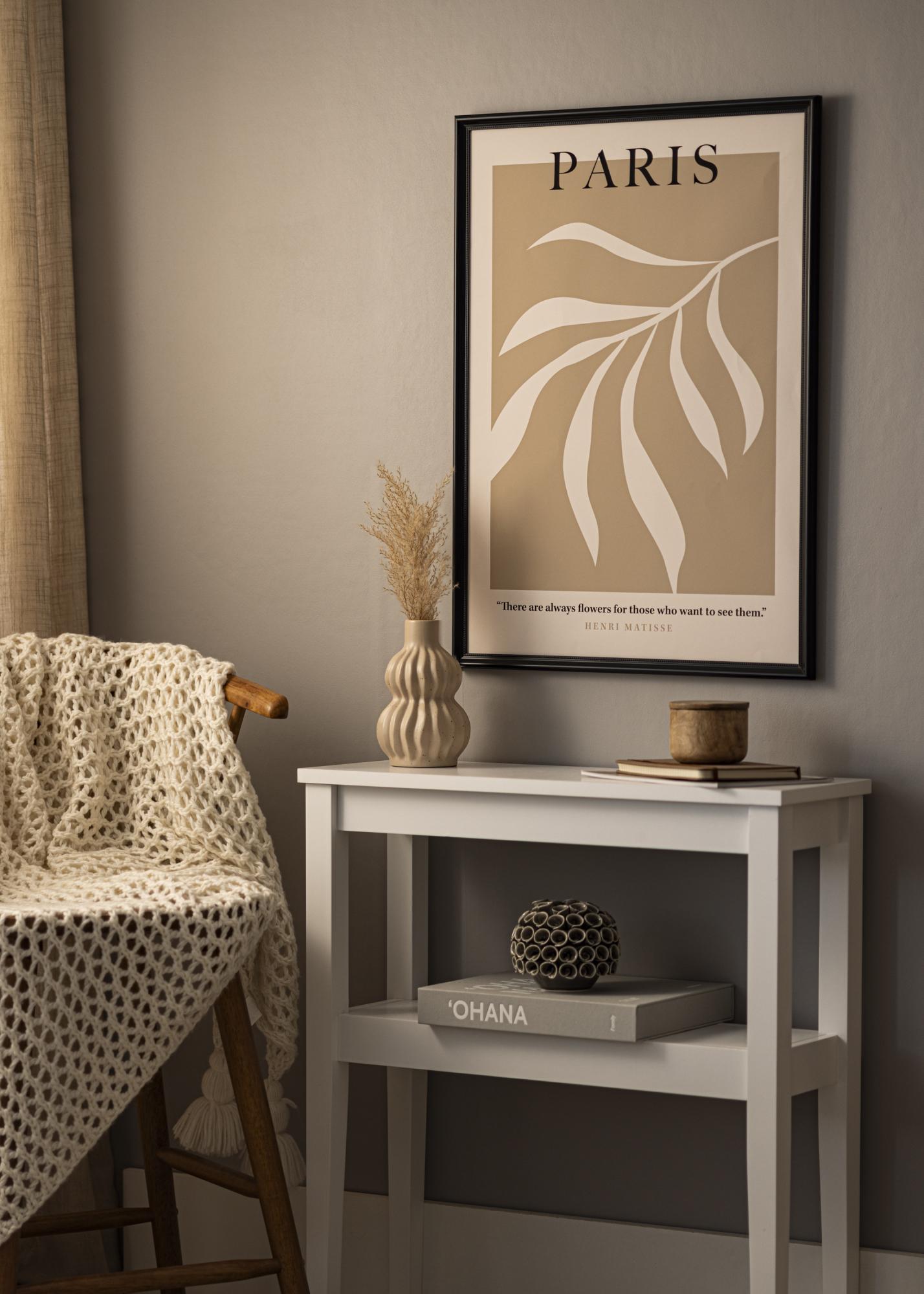 Kehyksessä on matta pinta ja valkoinen passepartout. Se on varustettu metallisilla ripustimilla sekä vaaka- että pystysuoraan ripustukseen.