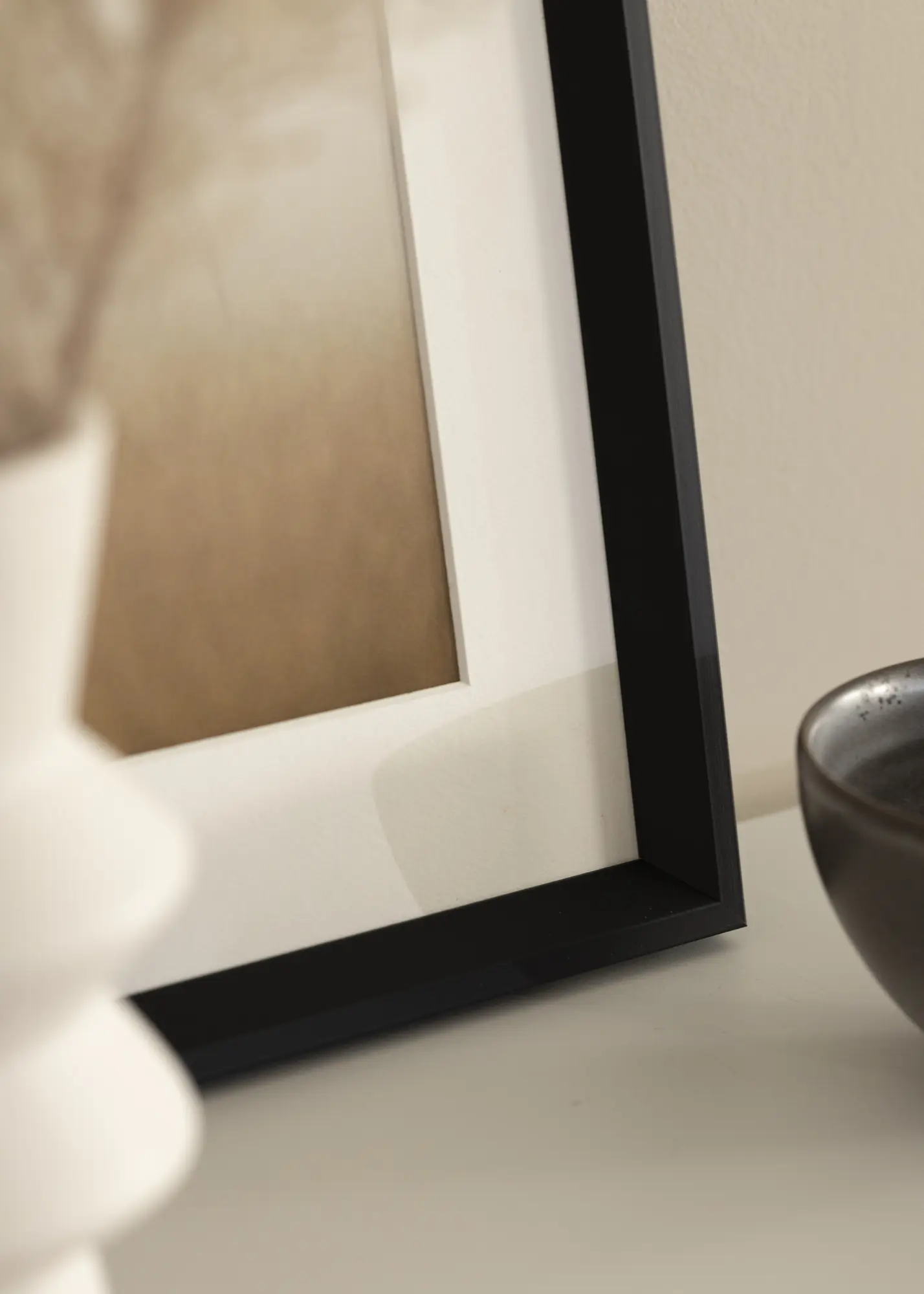 Globe Akryylilasi Musta on kauniin musta, moderni valokuvakehys. Kehyslista on 20 mm leveä ja se on viistosti leikattu 45° kulmassa kohti lasia, mikä antaa sille todella tyylikkään ilmeen. Sen neutraali, kiiltävä musta pinta tekee siitä täydellisen vaihtoehdon, riippumatta siitä haluatko kehystää mustavalkoisia tai eloisan värikkäitä kuva-aiheita. Valokuvakehys on varustettu akryylisuojalasilla, joka on kevyt ja särkymätön vaihtoehto tavalliselle lasille.