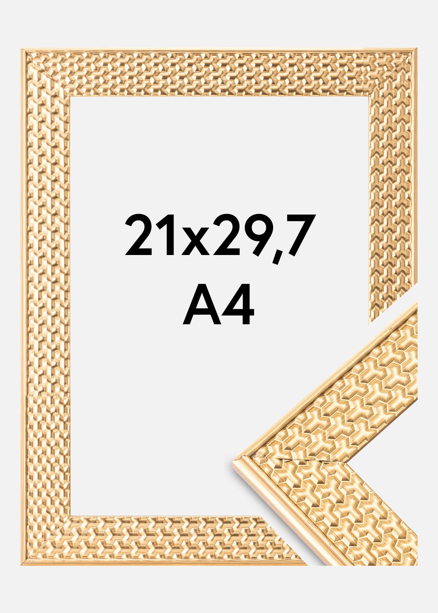 Luotettu avara tunnelma kotiisi tällä tyylikkäällä ja ajattomalla 21x29,7 cm (A4) kultakehyksellä retrotyylillä. 35 mm leveän kehyksen ansiosta se tuo vaikuttavan näkyvyyden ja tuo mukaan valitsemasi taiteen tai kuvan huomiota herättävällä tavalla. Kehyksen kiiltävä pinta heijastaa valoa kauniisti ja tuo ylellisen kosketuksen sisustukseesi.