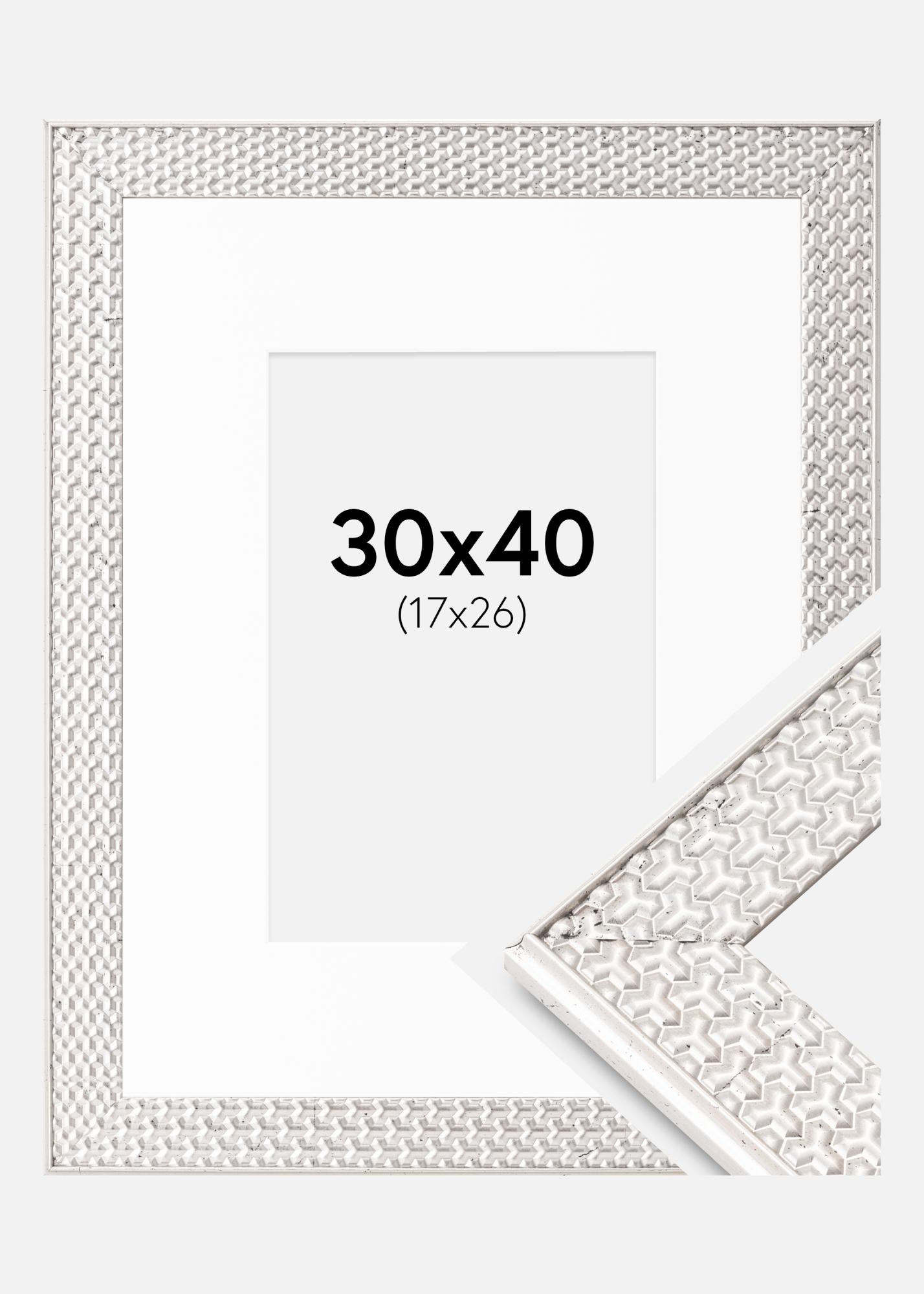 Paketti, johon kuuluu kehys ja kehykseen sopiva valkoinen paspatuuri. Tuotekuvassa näet kehyksen mitat (lihavoituna) ja paspatuurin sisämitat (suluissa). Huomioi, että paspatuurin sisämittojen tulee olla aina 1 cm pienemmät kuin haluttu kuvakoko.