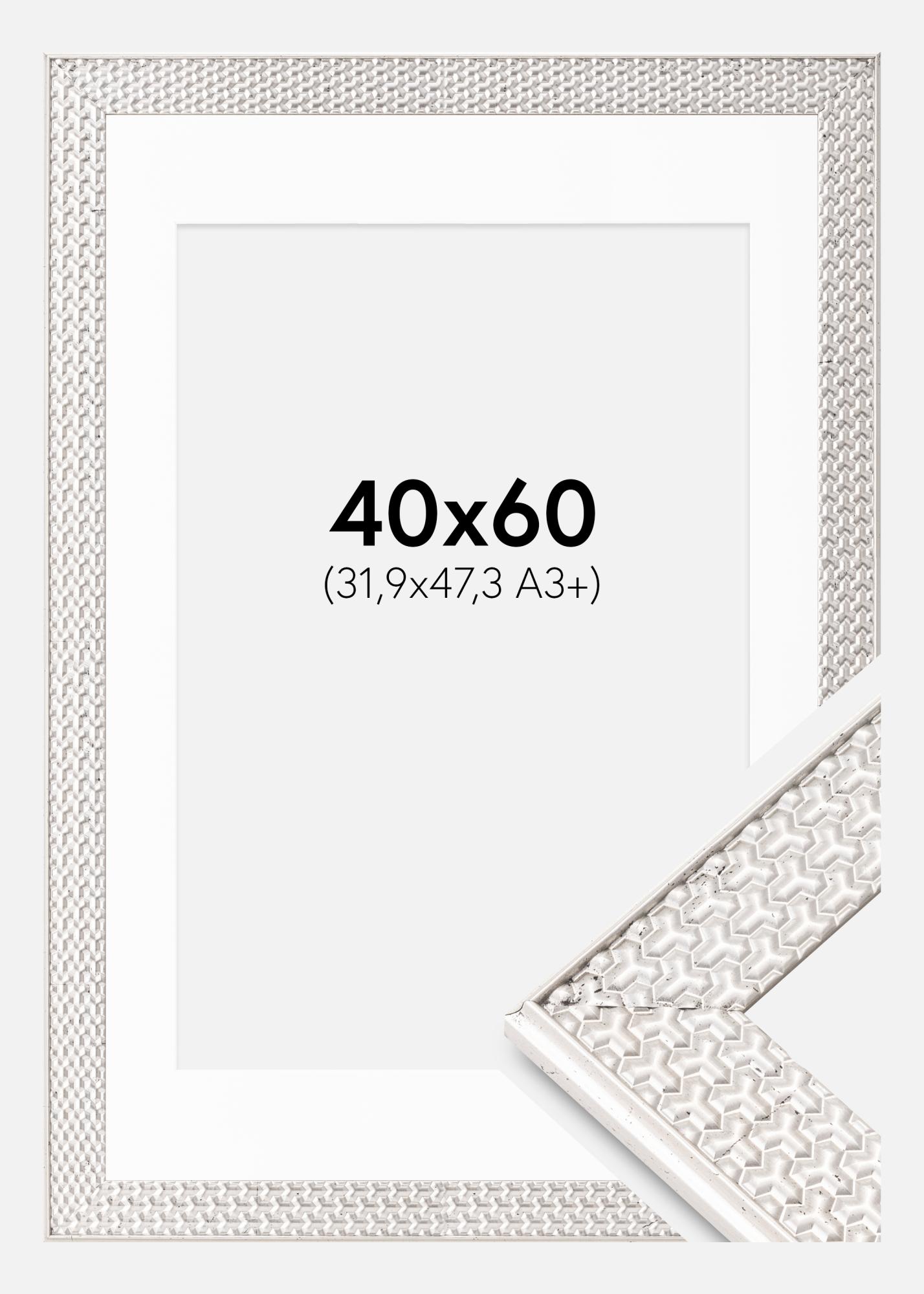 Kehys Grace Hopeanvärinen 40x60 cm - Passepartout Valkoinen 32,9x48,3 cm (A3+)