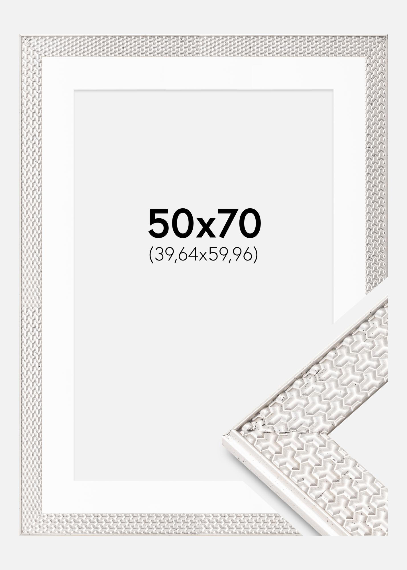 Kehys Grace Hopeanvärinen 50x70 cm - Passepartout Valkoinen 16x24 inches