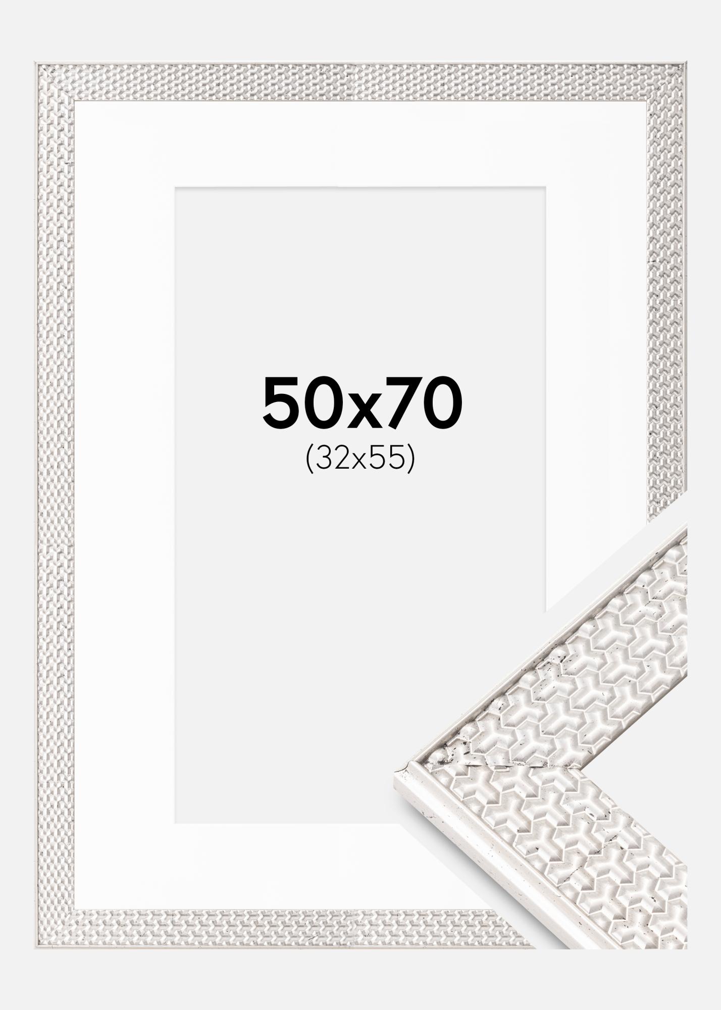 Kehys Grace Hopeanvärinen 50x70 cm - Passepartout Valkoinen 33x56 cm