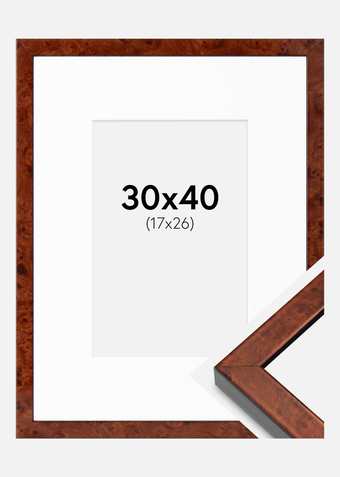 Kehys Hermes Saksanpähkinä 30x40 cm - Passepartout Valkoista 18x27 cm