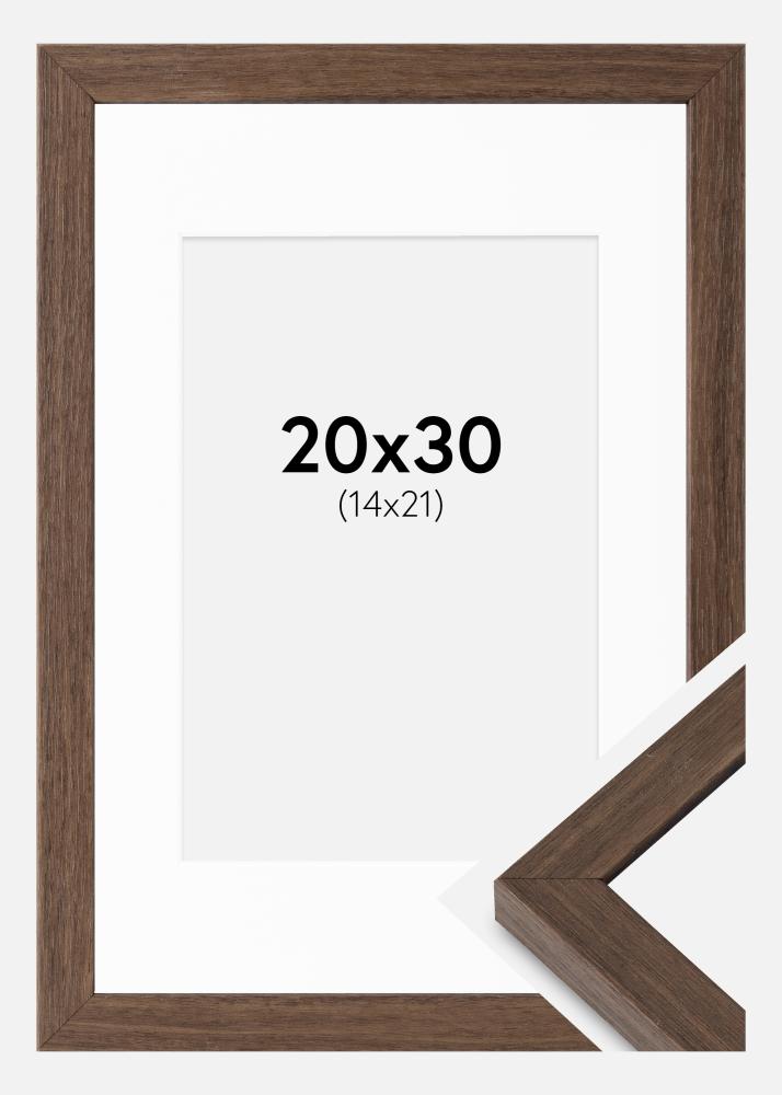 Kehys Hermes Saksanpähkinä 20x30 cm - Passepartout Valkoista 15x22 cm