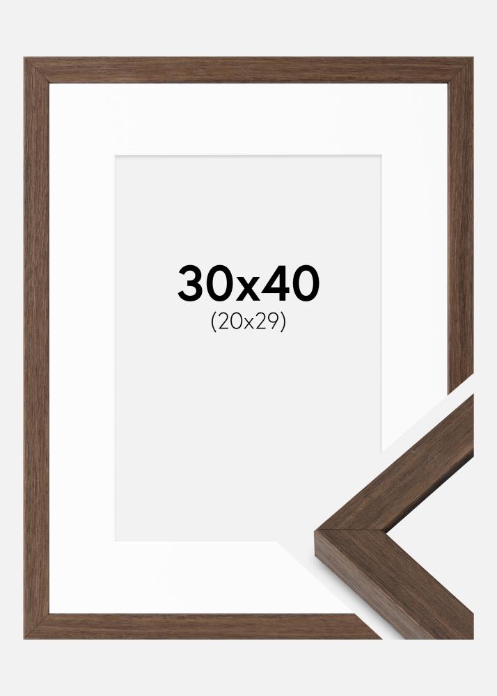 Tämä tyylikäs saksanpähkinäkuvioitu valokuvakehys, jonka leveys on 19,6 mm ja syvyys 25 mm, on täydellinen valinta korostamaan suosikkikuviasi. Valkoisella passepartoutilla, joka sopii 21x30 cm kokoisille kuville, luodaan tyylikäs kehystys, joka antaa aiheellesi lisäfokusta ja syvyyttä.