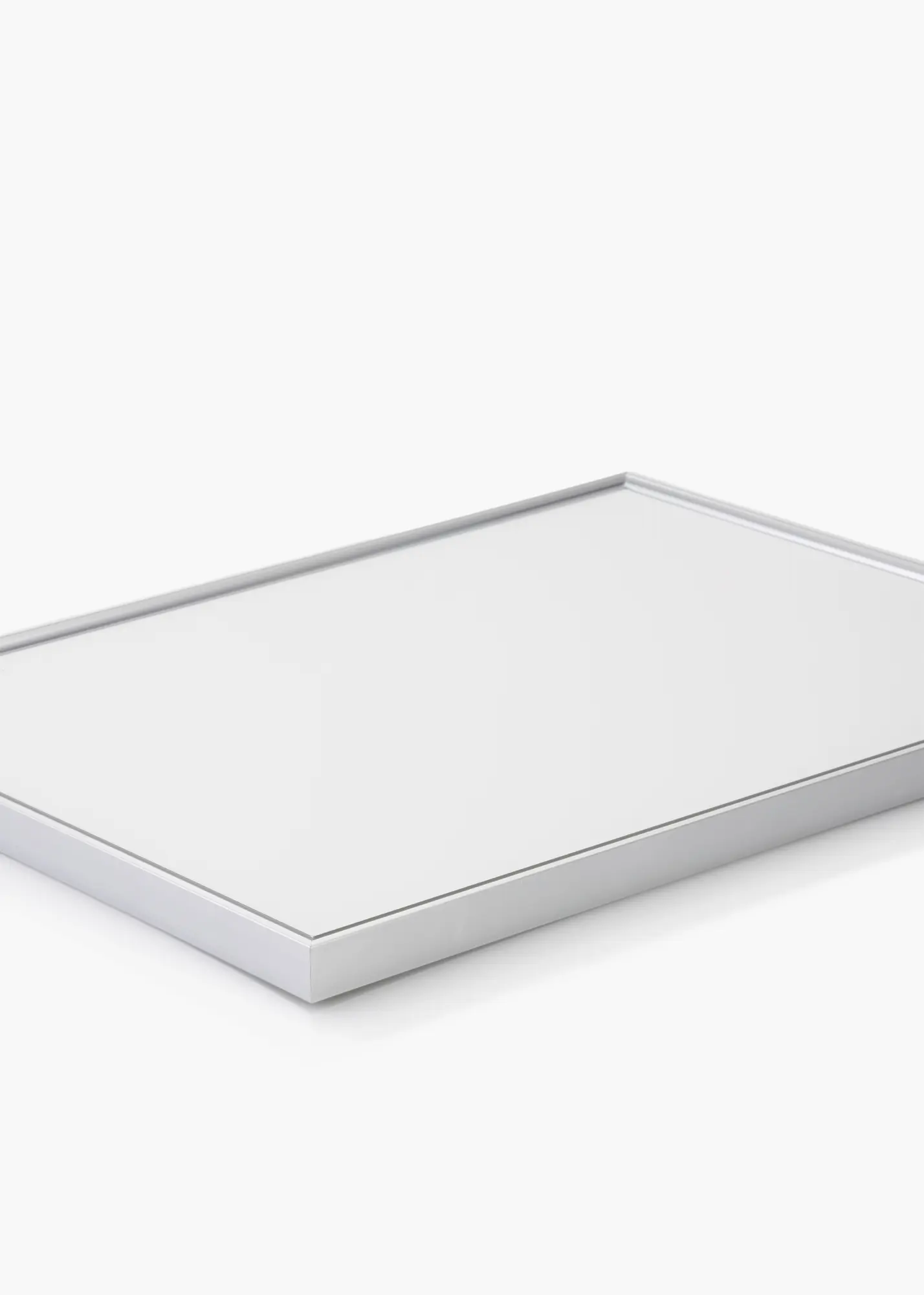 Tämä on trendikäs taulukehys, jossa on 9 mm ohut lista ja kevyesti pyöristetty profiili. Kehyksen herkullinen hopeanväri ja listan 18,3 mm syvyys luovat sille hyvin modernin ilmeen. Kehys sopii loistavasti moderneille aiheille, kuten sitaateille ja abstrakteille julisteille, mutta myös klassisille valokuville.