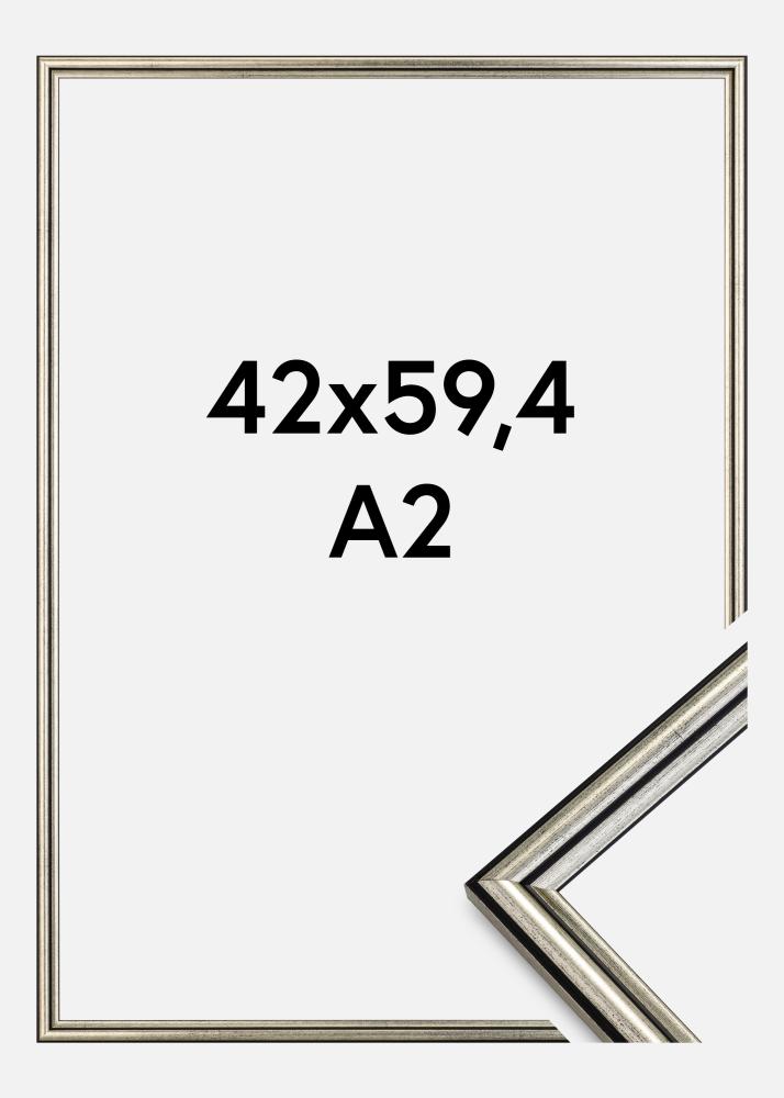 Tutustu tyylikkyyteen ja moderniin muotoiluun 42x59,4 cm:n (A2) hopeisella kehyksellämme, täydellinen tapa korostaa suosikkitaiteilijoidesi tai valokuviesi taideteoksia. Tämä valokuvakehys on tyylikäs yksityiskohta jokaisessa huoneessa, ja sen hienovaraiset mustia raitoja ja koristeellisia mustia viivoja tuovat ainutlaatuista syvyyttä ja luonnetta.
