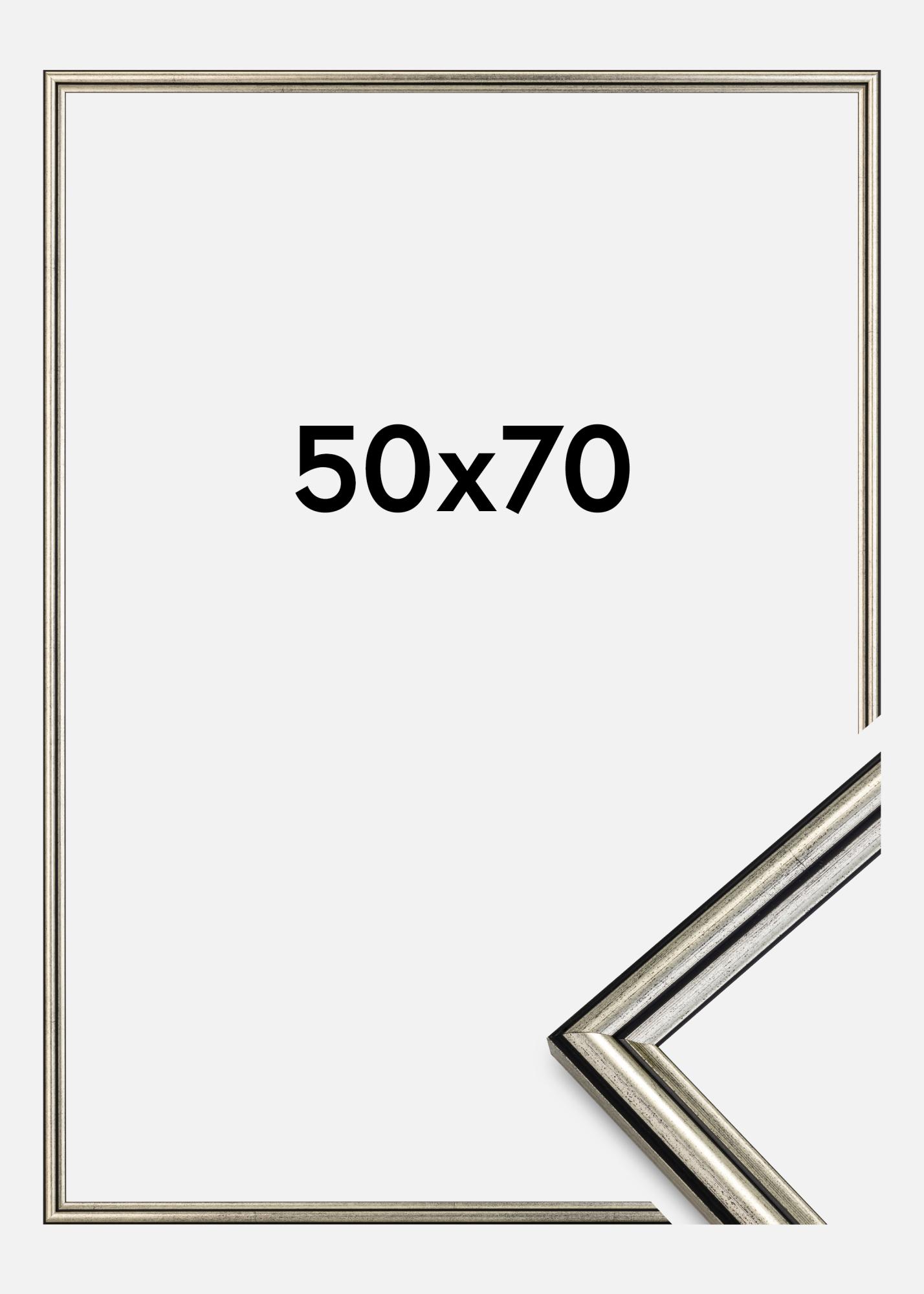 Löydä eleganttius ja hienostunut muotoilu 50x70 cm hopearamillamme, täydellinen tapa korostaa suosikkitaiteiluasi tai valokuvaasi. Tämä valokuvakehys on tyylikäs yksityiskohta jokaisessa huoneessa, sen hienovaraisilla mustankirjavilla elementeillä ja mustilla linjoilla, jotka antavat uniikin ilmeen.