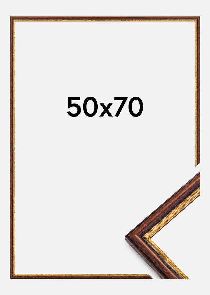Tutustu eleganssiin klassisessa 50x70 cm valokuvakehyksessämme, joka huokuu ajatonta charmia ruskealla värillään ja erottuvalla kultareunallaan. Tämä kehys on täydellinen valinta korostamaan suosikkitaide- tai valokuvateoksiasi perinteisen tyylin kosketuksella.