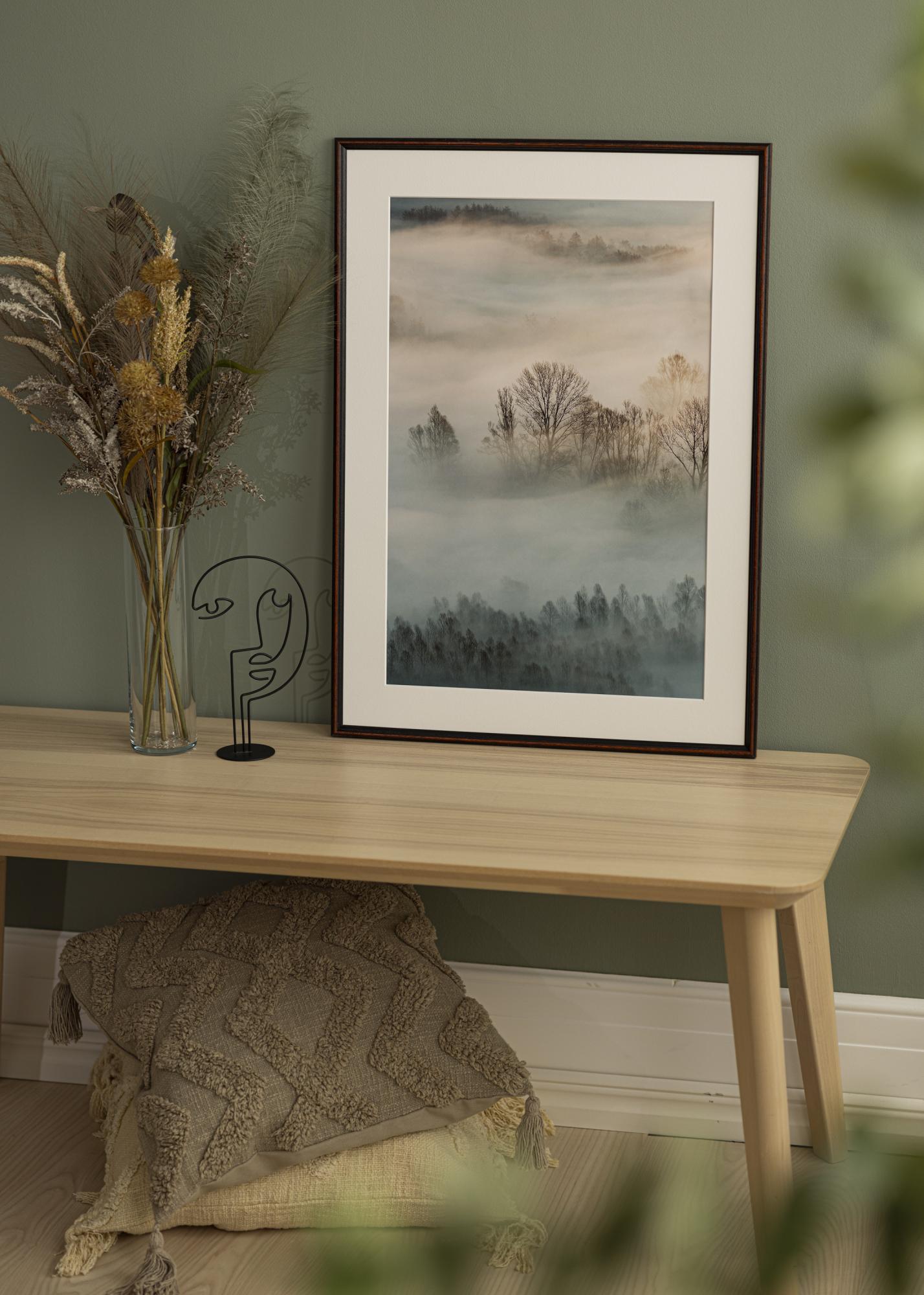 Kehyksessä on huomaamaton ja tyylikäs listakehys, jonka leveys on 15 mm, mikä luo hienovaraisen vaikutelman antamatta liikaa huomiota kuvan sisällöstä. Lisäksi kehyksen 14 mm syvyys luo mielenkiintoista varjoja ja syvyyttä, kun se ripustetaan seinälle.