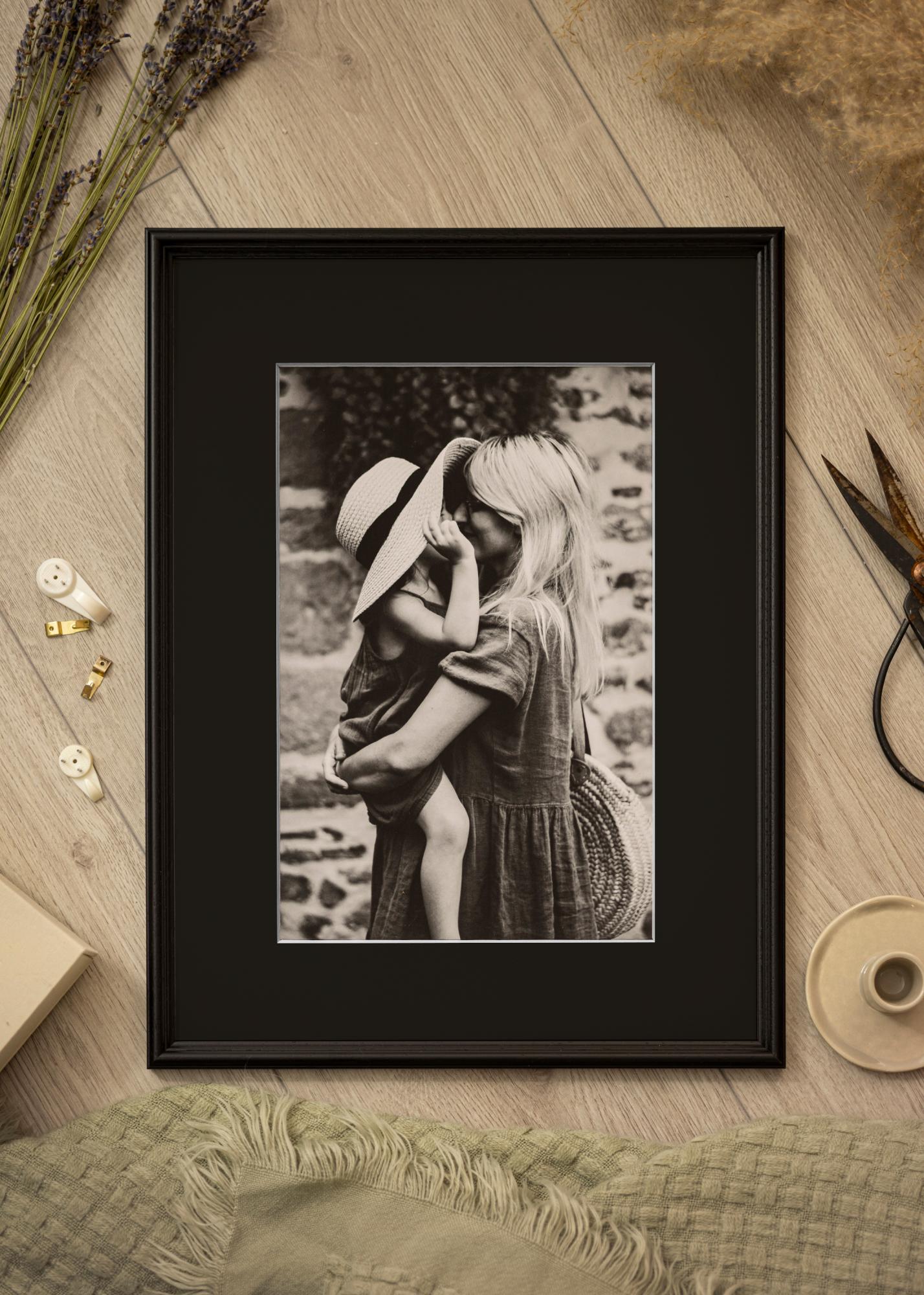 Paketti, johon kuuluu kehys ja kehykseen sopiva musta paspatuuri. Tuotekuvassa näet kehyksen mitat (lihavoituna) ja paspatuurin sisämitat (suluissa). Huomioi, että paspatuurin sisämittojen tulee olla aina 1 cm pienemmät kuin haluttu kuvakoko.