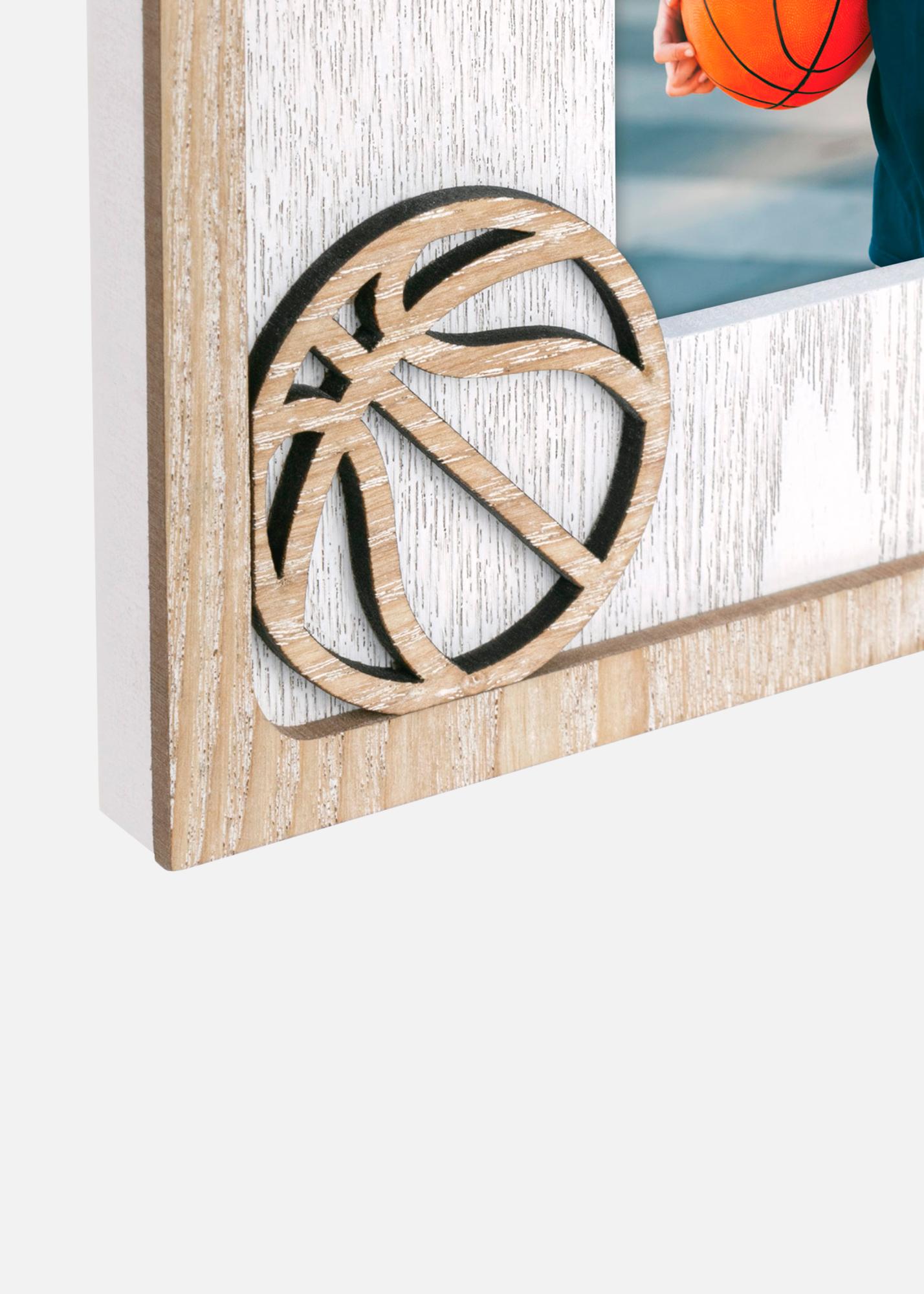 Tämä valokuvakehys on urheilullinen ja leikkisä design, jossa on koripalloaihe, täydellinen koripalloharrastajille ja nuorille urheilijoille. Kehyksessä on leikattuja yksityiskohtia koripallokorista ja koripallosta, mikä vahvistaa temaattista ilmettä. Kehys on suunniteltu valokuville, joiden koko on 10x15 cm, mikä tekee siitä ihanteellisen tallentamaan muistoja koripalloharjoituksista, otteluista tai muista urheiluun liittyvistä hetkistä. Täydellinen lahja koripallon ystäville tai henkilökohtaisena sisustuselementtinä urheilullisessa huoneessa.