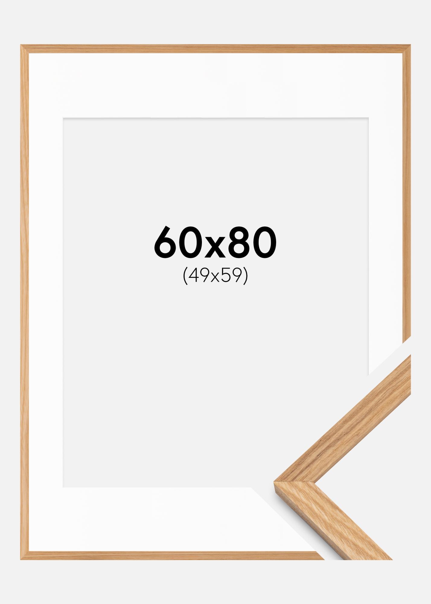 Kehys Massiv Tammi 60x80 cm - Passepartout Valkoista 50x60 cm