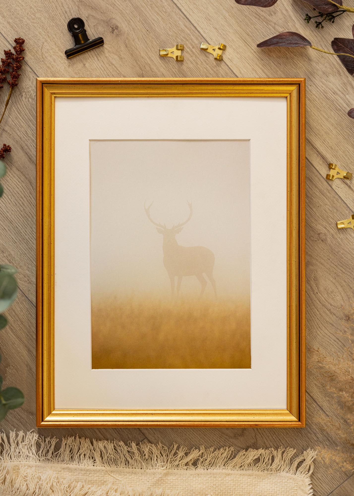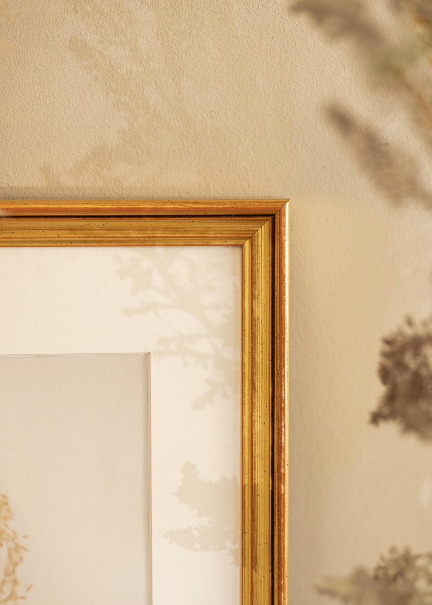 Rama Loki Kulta on elegantti ja klassinen valokuvakehys, joka antaa taideteoksillesi ja valokuvillesi hienostuneen kehystyksen. Sen siro profiili ja hienovaraiset patinoidut yksityiskohdat tarjoavat tälle kultakehykselle ajattoman luonteen, joka sopii täydellisesti sekä moderneihin että perinteisiin ympäristöihin. Kultainen pinta on kevyesti antiikkinen pienillä tummilla yksityiskohdilla, mikä vahvistaa sen eleganttia ulkonäköä ja luo syvyyden ja historian tuntua.