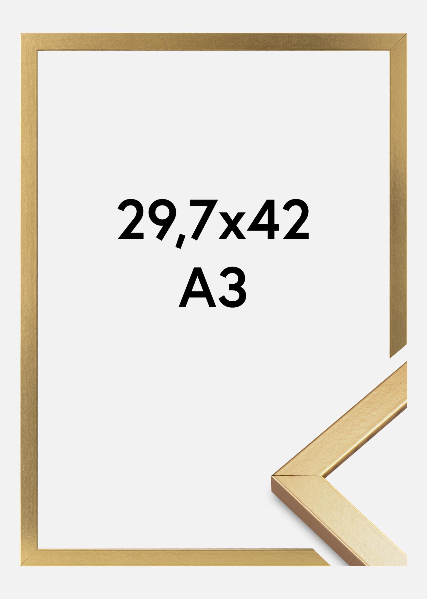 Koko 29,7 x 42 cm (A3) on täydellinen standardikokoinen julisteille ja todistuksille, mikä tekee sopivan sisällön löytämisestä uudelle kultakehyksellesi helppoa. Olipa kyseessä sitten koti tai toimisto, tämä valokuvakehys nostaa ja säilyttää muistosi ja saavutuksesi tyylikkäästi.