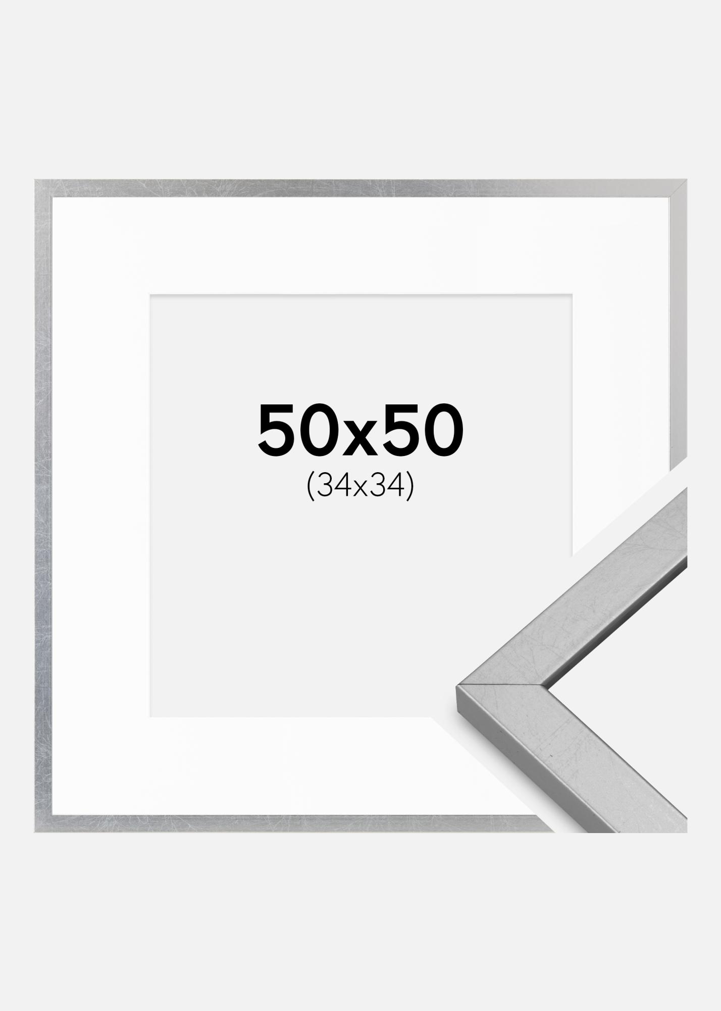 Kehys Minerva Hopea 50x50 cm - Passepartout Valkoista 35x35 cm